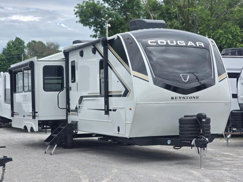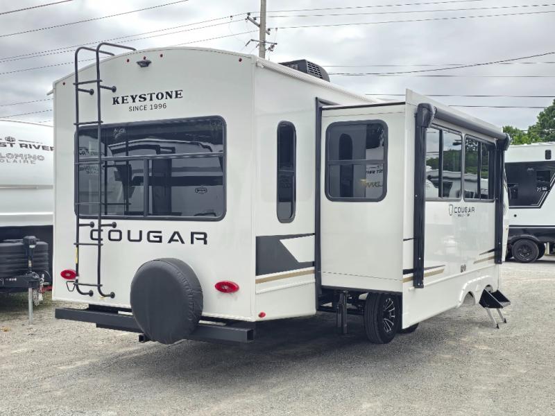 The Keystone Cougar Half-Ton fifth wheel and travel trailers are known as one of America's favorites for a reason! Some of those reasons are the exclusive features that come from Keystone, like the Winegard Air 360+ omni-directional rooftop antenna, the in-floor heating ducts, and the HyperCore composite wall construction with Vixen Fibrogloss high-gloss finish. The Cougar Half-Ton has a Climate Guard protection package with heat-deflecting white sidewalls, two roof attic vents, PEX plumbing and more to enjoy four season camping. Inside, you'll love the dimmable lighting, night roller shades throughout, shower skylight, and bedside USB outlets to keep your electronics charged.