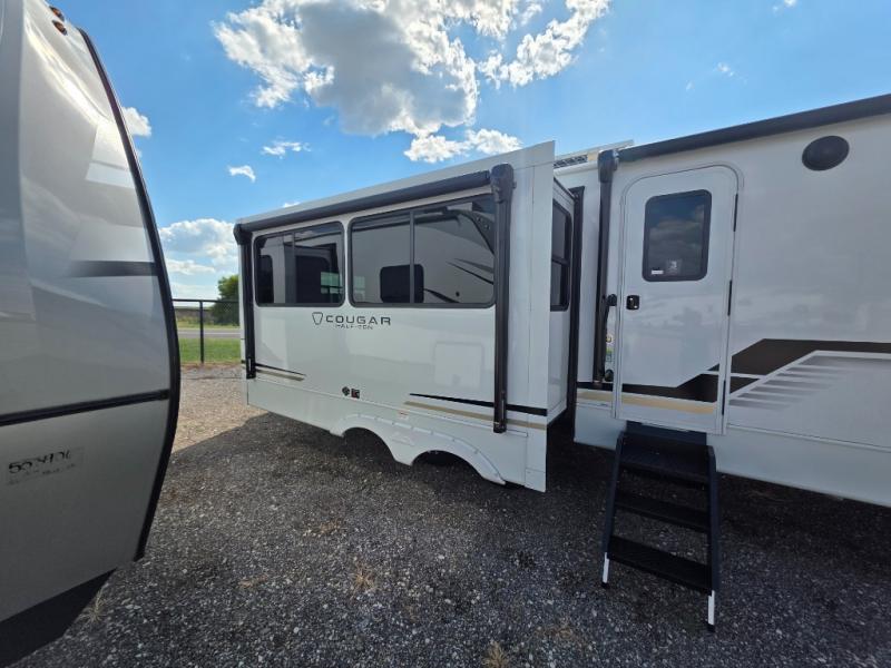 The Keystone Cougar Half-Ton fifth wheel and travel trailers are known as one of America's favorites for a reason! Some of those reasons are the exclusive features that come from Keystone, like the Winegard Air 360+ omni-directional rooftop antenna, the in-floor heating ducts, and the HyperCore composite wall construction with Vixen Fibrogloss high-gloss finish. The Cougar Half-Ton has a Climate Guard protection package with heat-deflecting white sidewalls, two roof attic vents, PEX plumbing and more to enjoy four season camping. Inside, you'll love the dimmable lighting, night roller shades throughout, shower skylight, and bedside USB outlets to keep your electronics charged.