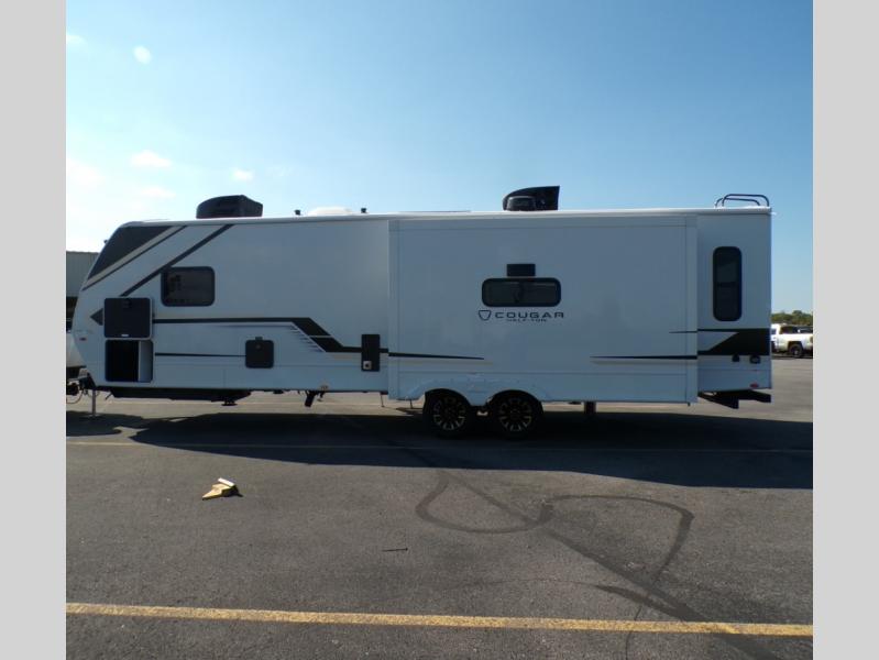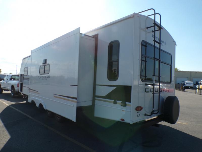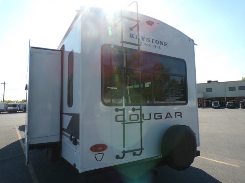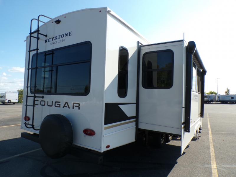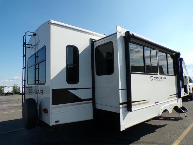 The Keystone Cougar Half-Ton fifth wheel and travel trailers are known as one of America's favorites for a reason! Some of those reasons are the exclusive features that come from Keystone, like the Winegard Air 360+ omni-directional rooftop antenna, the in-floor heating ducts, and the HyperCore composite wall construction with Vixen Fibrogloss high-gloss finish. The Cougar Half-Ton has a Climate Guard protection package with heat-deflecting white sidewalls, two roof attic vents, PEX plumbing and more to enjoy four season camping. Inside, you'll love the dimmable lighting, night roller shades throughout, shower skylight, and bedside USB outlets to keep your electronics charged.