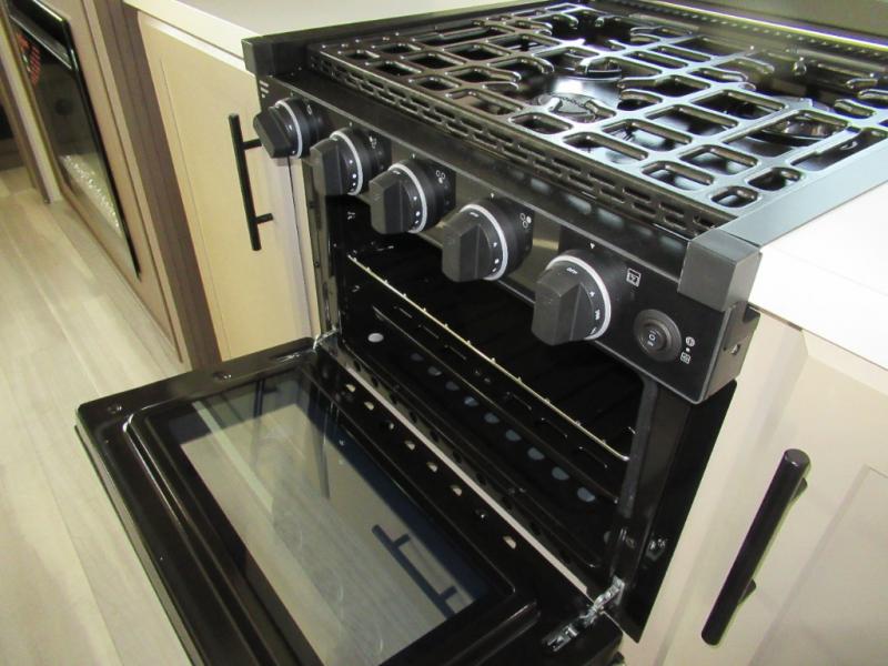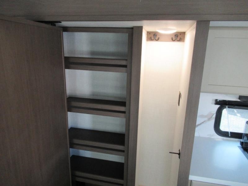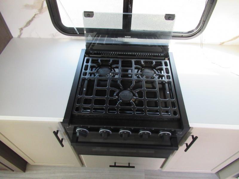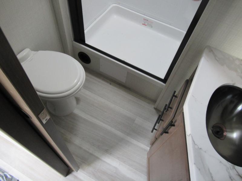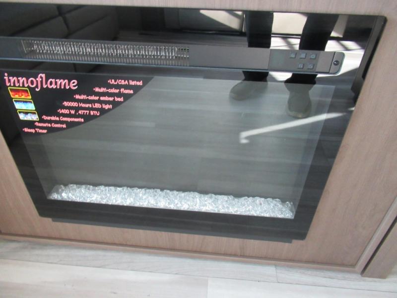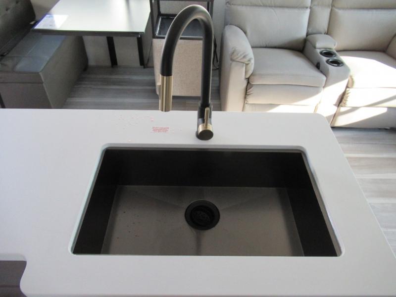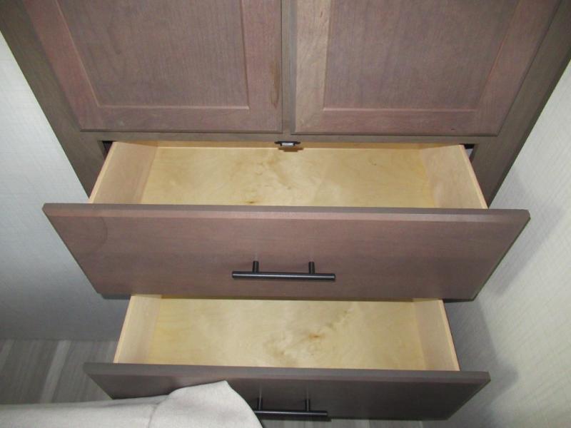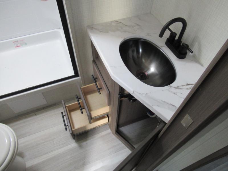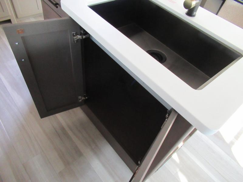 Trips spent in this travel trailer are sure to bring memories! The dual opposing slides in the combined kitchen and living area provide your crew with plenty of space to relax on the theater seating, dine at the dinette table, and prep meals with the kitchen island. There is also a tri-fold sleeper sofa here for guests and a pivoting entertainment center with a hidden pantry to keep snacks stocked. And a second pantry and hutch provides even more storage! You'll love having your own private bedroom up front, complete with a king bed, dual bedside drawers and nightstands and additional storage drawers to keep your space tidy. Outside, you'll find two power awnings, a 2" accessory hitch, and a drop frame pass-thru storage for fishing poles, hiking gear, and more!