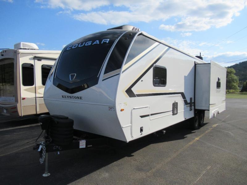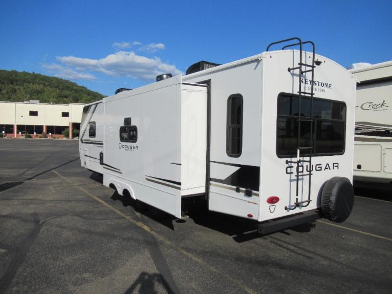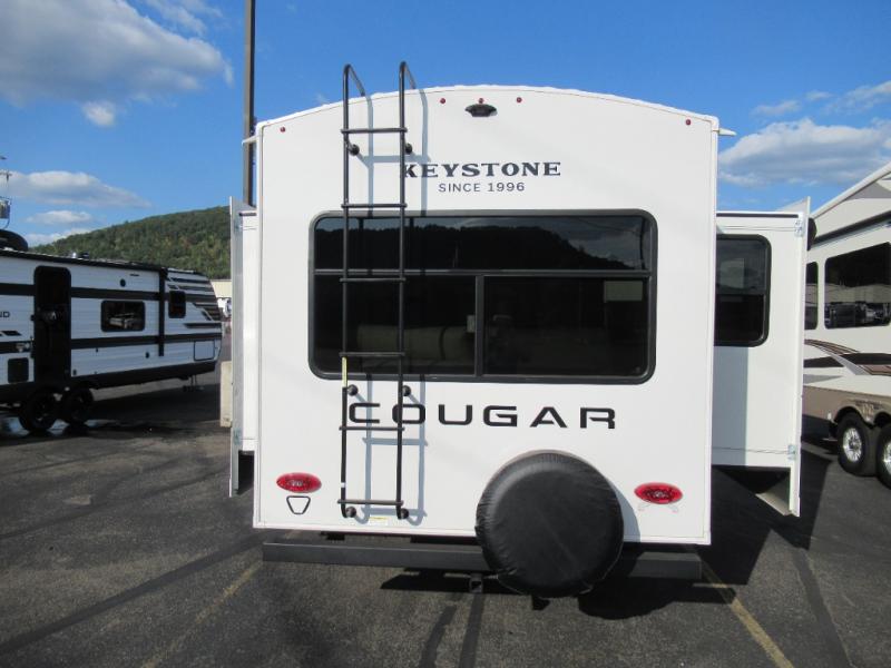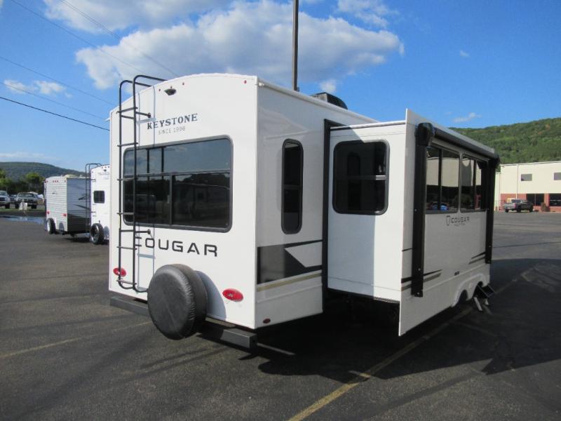 The Keystone Cougar Half-Ton fifth wheel and travel trailers are known as one of America's favorites for a reason! Some of those reasons are the exclusive features that come from Keystone, like the Winegard Air 360+ omni-directional rooftop antenna, the in-floor heating ducts, and the HyperCore composite wall construction with Vixen Fibrogloss high-gloss finish. The Cougar Half-Ton has a Climate Guard protection package with heat-deflecting white sidewalls, two roof attic vents, PEX plumbing and more to enjoy four season camping. Inside, you'll love the dimmable lighting, night roller shades throughout, shower skylight, and bedside USB outlets to keep your electronics charged.