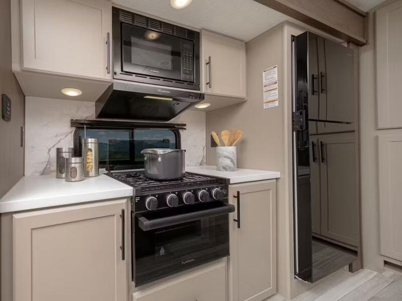 The Keystone Cougar Half-Ton fifth wheel and travel trailers are known as one of America's favorites for a reason! Some of those reasons are the exclusive features that come from Keystone, like the Winegard Air 360+ omni-directional rooftop antenna, the in-floor heating ducts, and the HyperCore composite wall construction with Vixen Fibrogloss high-gloss finish. The Cougar Half-Ton has a Climate Guard protection package with heat-deflecting white sidewalls, two roof attic vents, PEX plumbing and more to enjoy four season camping. Inside, you'll love the dimmable lighting, night roller shades throughout, shower skylight, and bedside USB outlets to keep your electronics charged.