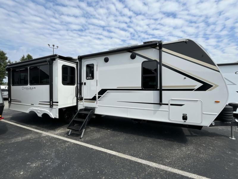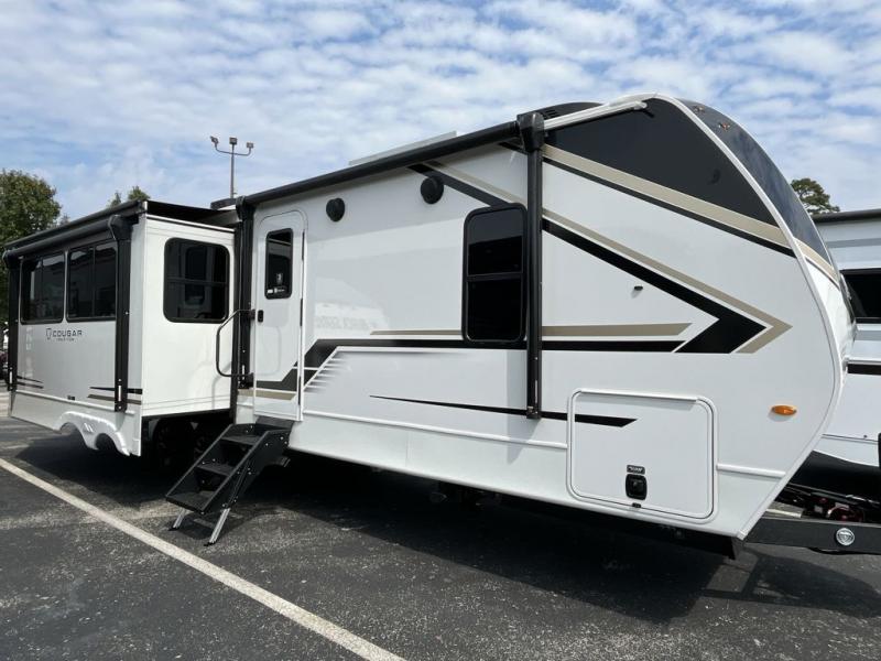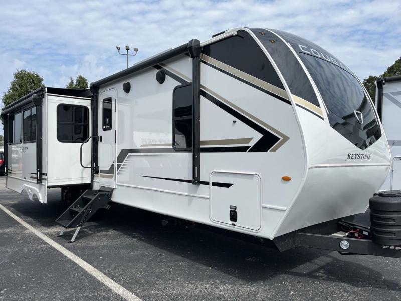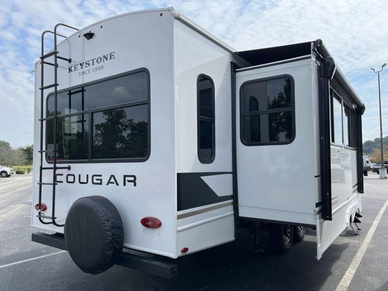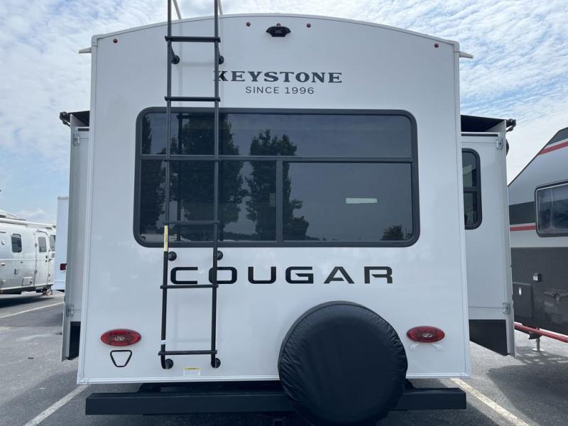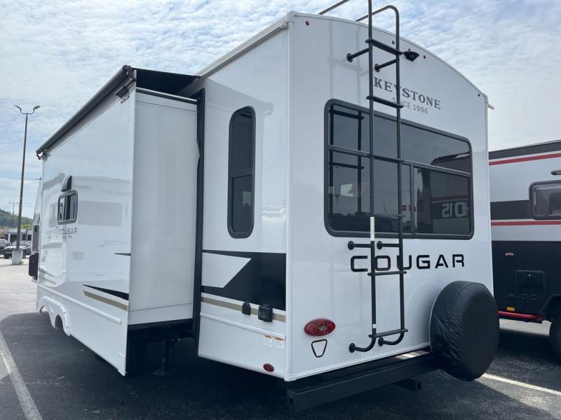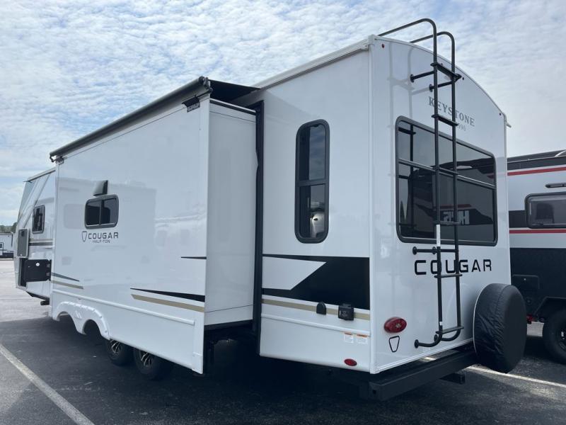 The Keystone Cougar Half-Ton fifth wheel and travel trailers are known as one of America's favorites for a reason! Some of those reasons are the exclusive features that come from Keystone, like the Winegard Air 360+ omni-directional rooftop antenna, the in-floor heating ducts, and the HyperCore composite wall construction with Vixen Fibrogloss high-gloss finish. The Cougar Half-Ton has a Climate Guard protection package with heat-deflecting white sidewalls, two roof attic vents, PEX plumbing and more to enjoy four season camping. Inside, you'll love the dimmable lighting, night roller shades throughout, shower skylight, and bedside USB outlets to keep your electronics charged.