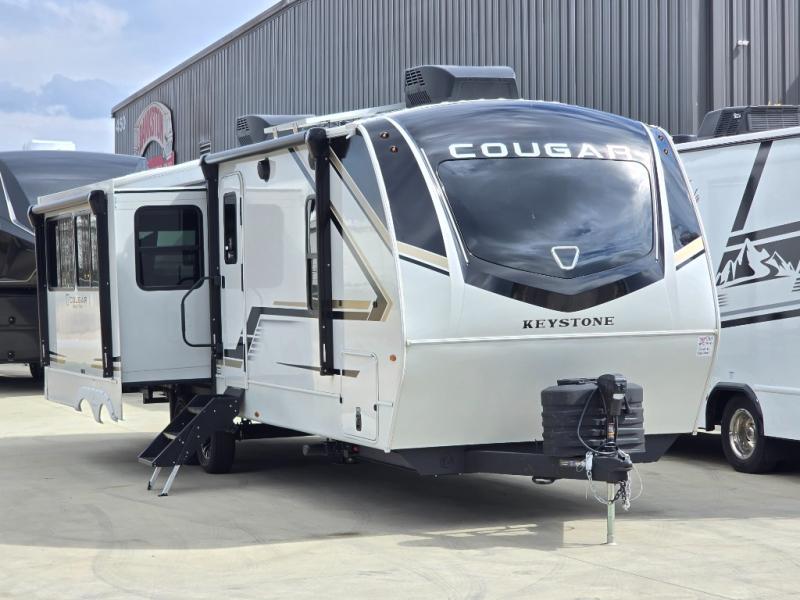 The Keystone Cougar Half-Ton fifth wheel and travel trailers are known as one of America's favorites for a reason! Some of those reasons are the exclusive features that come from Keystone, like the Winegard Air 360+ omni-directional rooftop antenna, the in-floor heating ducts, and the HyperCore composite wall construction with Vixen Fibrogloss high-gloss finish. The Cougar Half-Ton has a Climate Guard protection package with heat-deflecting white sidewalls, two roof attic vents, PEX plumbing and more to enjoy four season camping. Inside, you'll love the dimmable lighting, night roller shades throughout, shower skylight, and bedside USB outlets to keep your electronics charged.