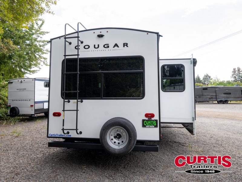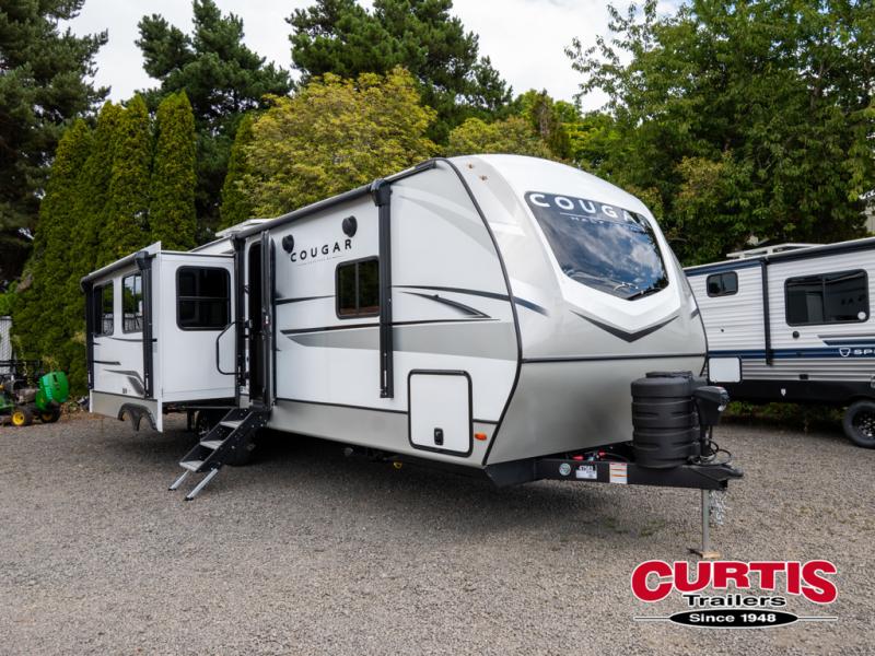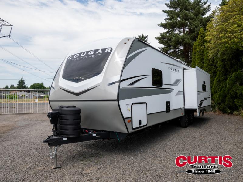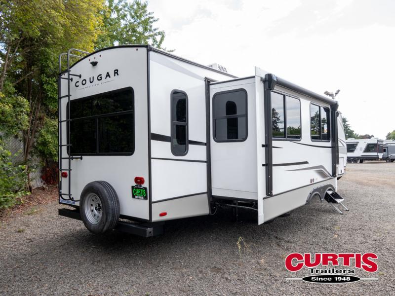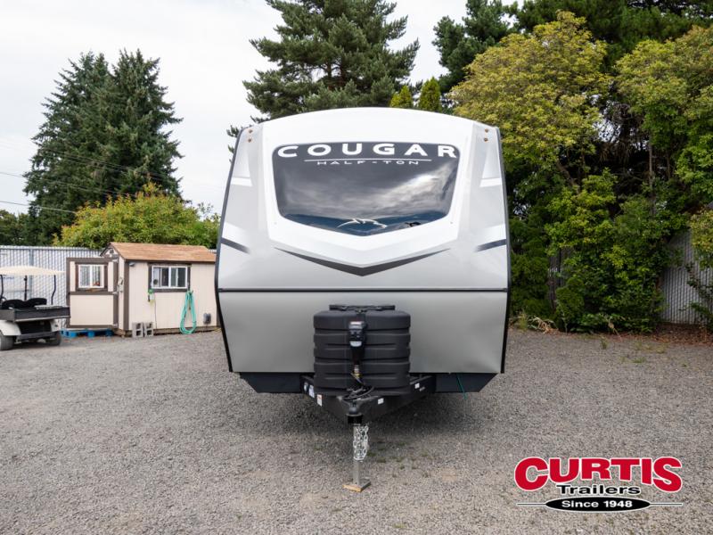 The Keystone Cougar Half-Ton fifth wheel and travel trailers are known as one of America's favorites for a reason! Some of those reasons are the exclusive features that come from Keystone, like the Winegard Air 360+ omni-directional rooftop antenna, the in-floor heating ducts, and the HyperCore composite wall construction with Vixen Fibrogloss high-gloss finish. The Cougar Half-Ton has a Climate Guard protection package with heat-deflecting white sidewalls, two roof attic vents, PEX plumbing and more to enjoy four season camping. Inside, you'll love the dimmable lighting, night roller shades throughout, shower skylight, and bedside USB outlets to keep your electronics charged.