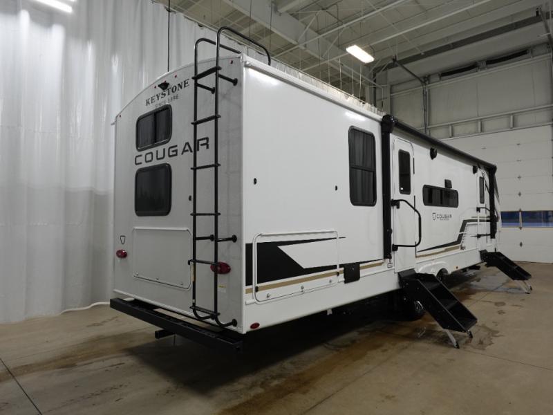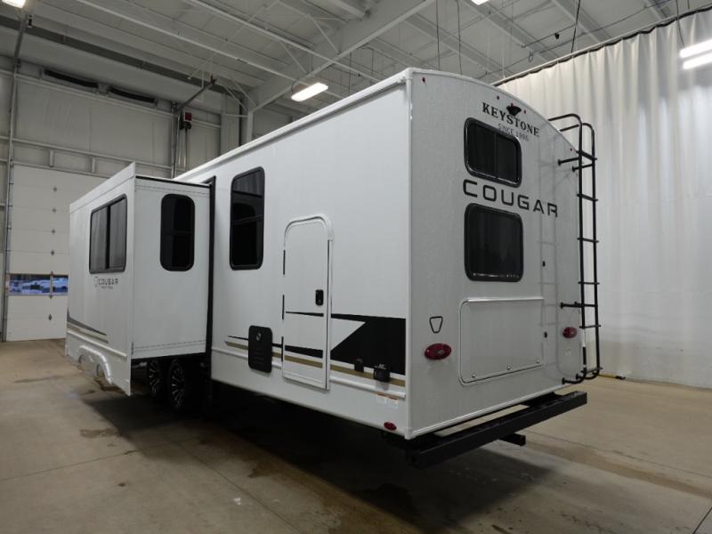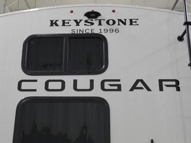 The Keystone Cougar Half-Ton fifth wheel and travel trailers are known as one of America's favorites for a reason! Some of those reasons are the exclusive features that come from Keystone, like the Winegard Air 360+ omni-directional rooftop antenna, the in-floor heating ducts, and the HyperCore composite wall construction with Vixen Fibrogloss high-gloss finish. The Cougar Half-Ton has a Climate Guard protection package with heat-deflecting white sidewalls, two roof attic vents, PEX plumbing and more to enjoy four season camping. Inside, you'll love the dimmable lighting, night roller shades throughout, shower skylight, and bedside USB outlets to keep your electronics charged.