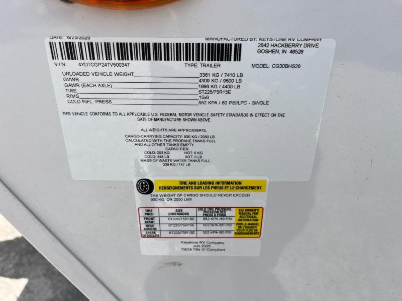 New 2026 Keystone RV Cougar Half-Ton 30BHS Travel Trailer