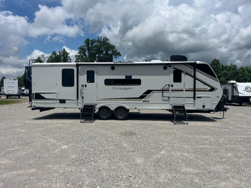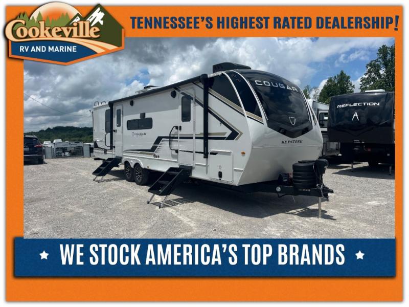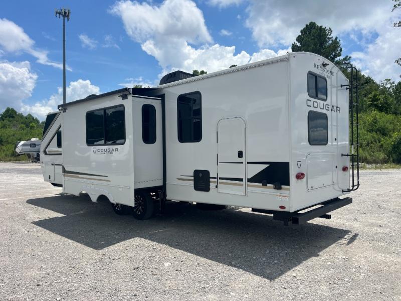 The Keystone Cougar Half-Ton fifth wheel and travel trailers are known as one of America's favorites for a reason! Some of those reasons are the exclusive features that come from Keystone, like the Winegard Air 360+ omni-directional rooftop antenna, the in-floor heating ducts, and the HyperCore composite wall construction with Vixen Fibrogloss high-gloss finish. The Cougar Half-Ton has a Climate Guard protection package with heat-deflecting white sidewalls, two roof attic vents, PEX plumbing and more to enjoy four season camping. Inside, you'll love the dimmable lighting, night roller shades throughout, shower skylight, and bedside USB outlets to keep your electronics charged.