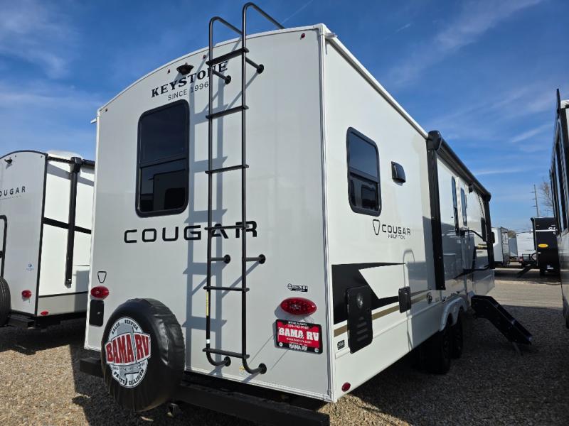 The Keystone Cougar Half-Ton fifth wheel and travel trailers are known as one of America's favorites for a reason! Some of those reasons are the exclusive features that come from Keystone, like the Winegard Air 360+ omni-directional rooftop antenna, the in-floor heating ducts, and the HyperCore composite wall construction with Vixen Fibrogloss high-gloss finish. The Cougar Half-Ton has a Climate Guard protection package with heat-deflecting white sidewalls, two roof attic vents, PEX plumbing and more to enjoy four season camping. Inside, you'll love the dimmable lighting, night roller shades throughout, shower skylight, and bedside USB outlets to keep your electronics charged.