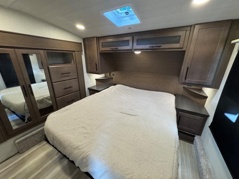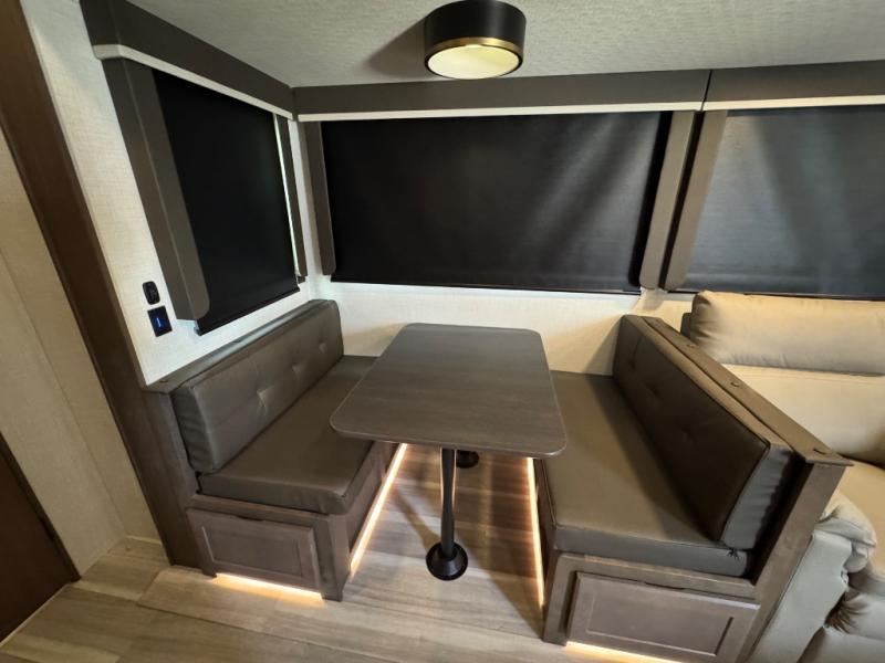 The Keystone Cougar Half-Ton fifth wheel and travel trailers are known as one of America's favorites for a reason! Some of those reasons are the exclusive features that come from Keystone, like the Winegard Air 360+ omni-directional rooftop antenna, the in-floor heating ducts, and the HyperCore composite wall construction with Vixen Fibrogloss high-gloss finish. The Cougar Half-Ton has a Climate Guard protection package with heat-deflecting white sidewalls, two roof attic vents, PEX plumbing and more to enjoy four season camping. Inside, you'll love the dimmable lighting, night roller shades throughout, shower skylight, and bedside USB outlets to keep your electronics charged.