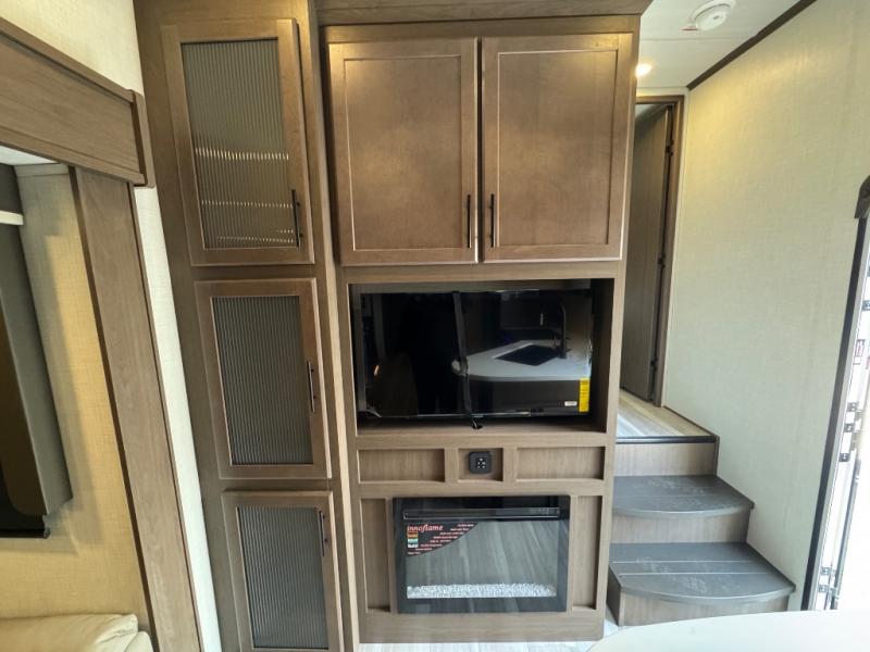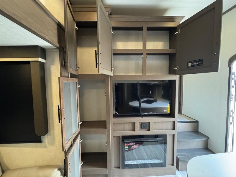 You won't have any trouble convincing your friends or family to join you on an adventure with this Cougar Half-Ton fifth wheel! Since this unit has both a full and a half bathroom, it will be easy for everyone to get ready in the morning, and the 21" Furrion range will allow you to whip up a full batch of pancakes for your guests. Store any leftovers in the 12V refrigerator before heading out on your next exciting expedition. If you need your backpacks and hiking gear, you can grab them from the exterior pass-through storage, and you will enjoy the cozy living space with the fireplace!