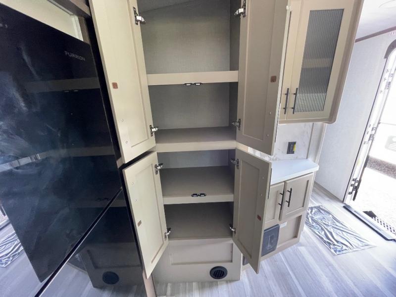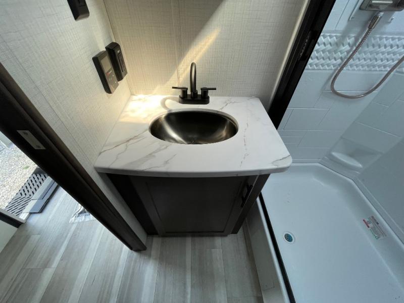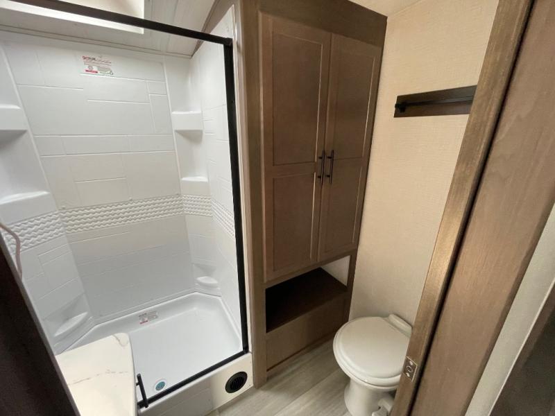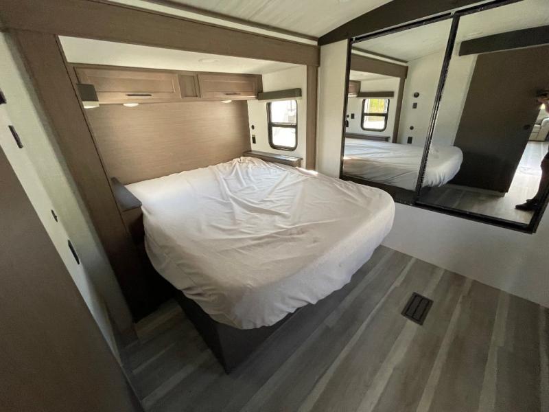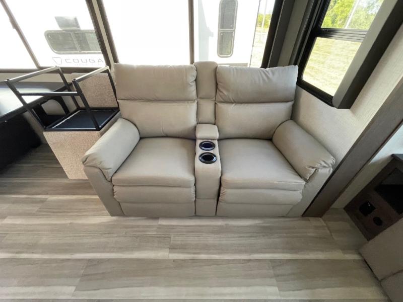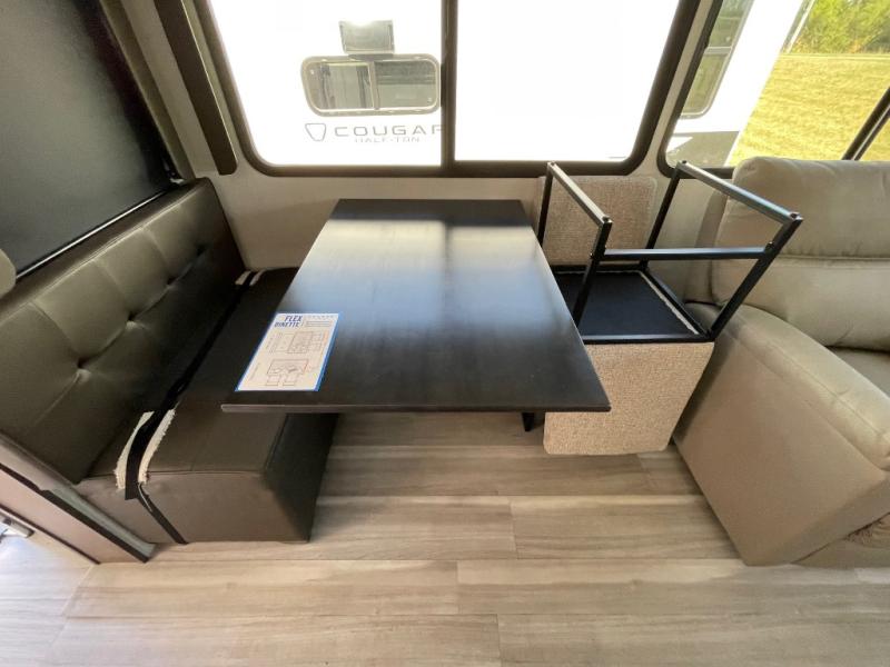 The Keystone Cougar Half-Ton fifth wheel and travel trailers are known as one of America's favorites for a reason! Some of those reasons are the exclusive features that come from Keystone, like the Winegard Air 360+ omni-directional rooftop antenna, the in-floor heating ducts, and the HyperCore composite wall construction with Vixen Fibrogloss high-gloss finish. The Cougar Half-Ton has a Climate Guard protection package with heat-deflecting white sidewalls, two roof attic vents, PEX plumbing and more to enjoy four season camping. Inside, you'll love the dimmable lighting, night roller shades throughout, shower skylight, and bedside USB outlets to keep your electronics charged.