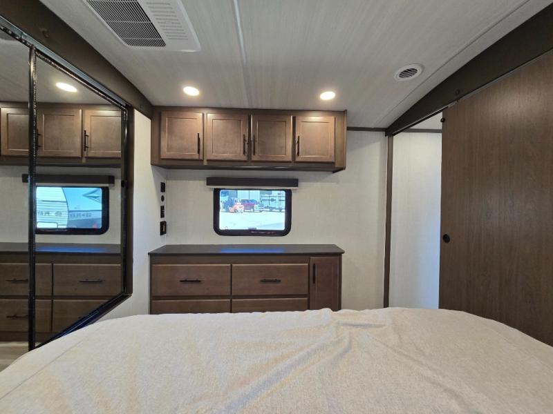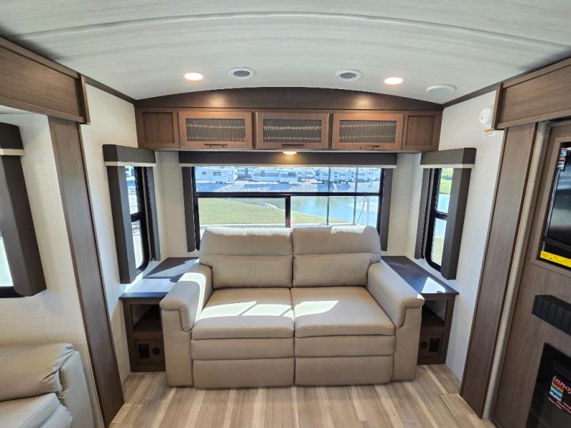 The Keystone Cougar Half-Ton fifth wheel and travel trailers are known as one of America's favorites for a reason! Some of those reasons are the exclusive features that come from Keystone, like the Winegard Air 360+ omni-directional rooftop antenna, the in-floor heating ducts, and the HyperCore composite wall construction with Vixen Fibrogloss high-gloss finish. The Cougar Half-Ton has a Climate Guard protection package with heat-deflecting white sidewalls, two roof attic vents, PEX plumbing and more to enjoy four season camping. Inside, you'll love the dimmable lighting, night roller shades throughout, shower skylight, and bedside USB outlets to keep your electronics charged.