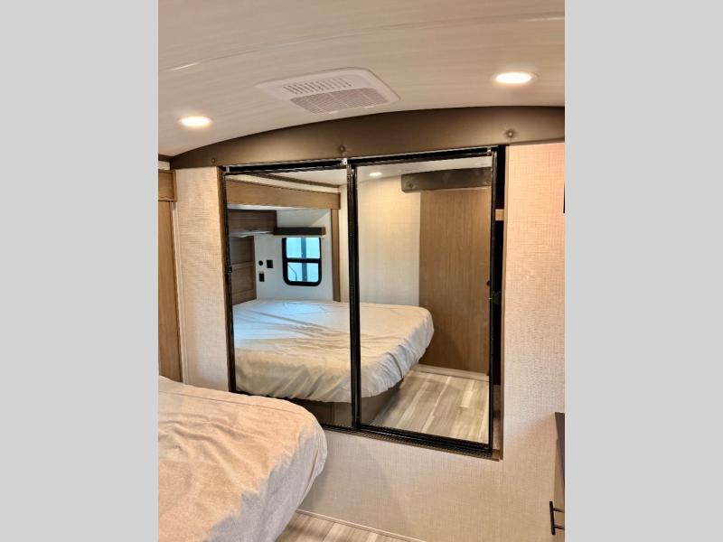 The Keystone Cougar Half-Ton fifth wheel and travel trailers are known as one of America's favorites for a reason! Some of those reasons are the exclusive features that come from Keystone, like the Winegard Air 360+ omni-directional rooftop antenna, the in-floor heating ducts, and the HyperCore composite wall construction with Vixen Fibrogloss high-gloss finish. The Cougar Half-Ton has a Climate Guard protection package with heat-deflecting white sidewalls, two roof attic vents, PEX plumbing and more to enjoy four season camping. Inside, you'll love the dimmable lighting, night roller shades throughout, shower skylight, and bedside USB outlets to keep your electronics charged.