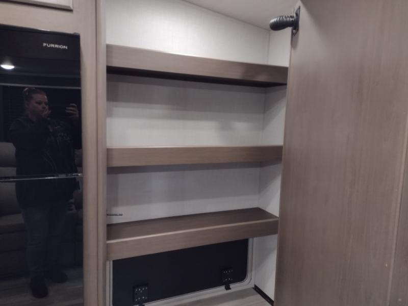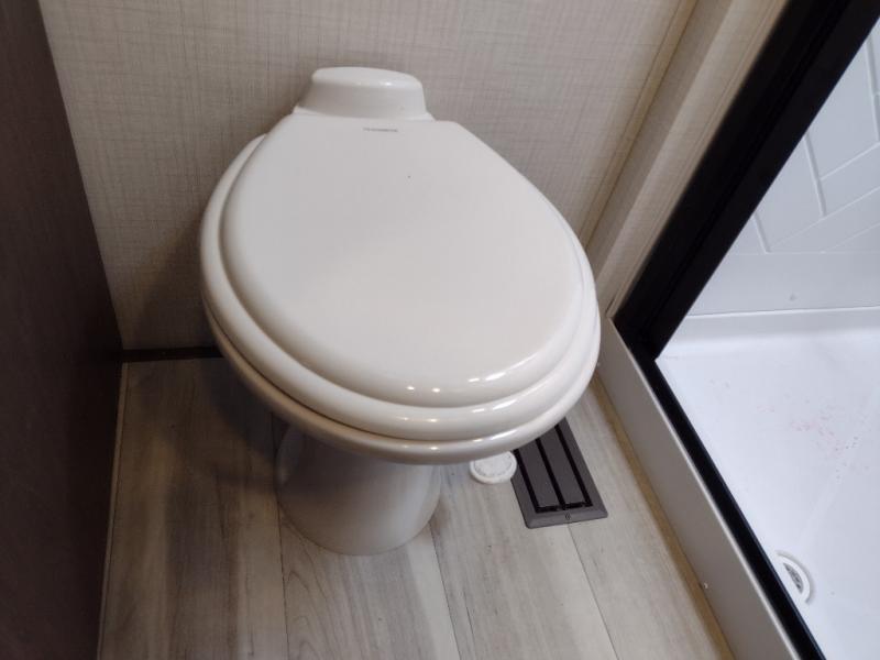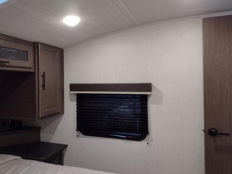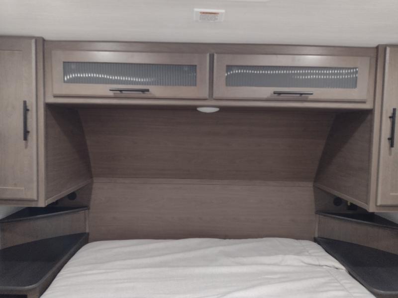 The Cougar Sport structural I-beam frame with stamped steel cross-members and outriggers, plus its AlphaPly roof membrane are what active RVers love about the construction of the Cougar line. The Cougar Sport models are no exception when it comes to a great package, as well as being smaller and lighter weight than their big brother Cougar models. A one-piece, heated and enclosed polypropylene underbelly will add protection against the elements, and the electric stabilizer jacks will provide more stability. On the inside, residential shaker style hardwood cabinet doors and decorative crown molding, plus seamless pressed countertops and an on-demand water heater will make your unit feel even more like home. You are also sure to appreciate the shiplap style decorative accent wall behind the bed, a porcelain foot flush toilet in the bathroom, plus residential kitchen hardware, and so much more.