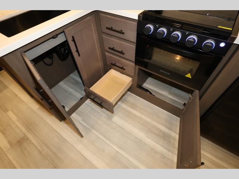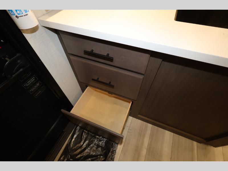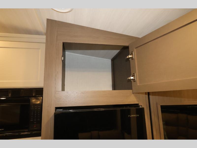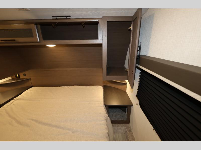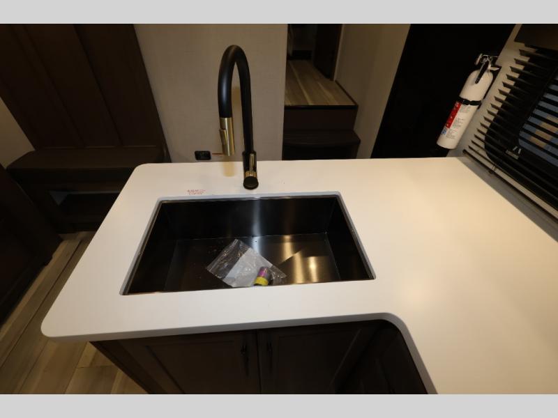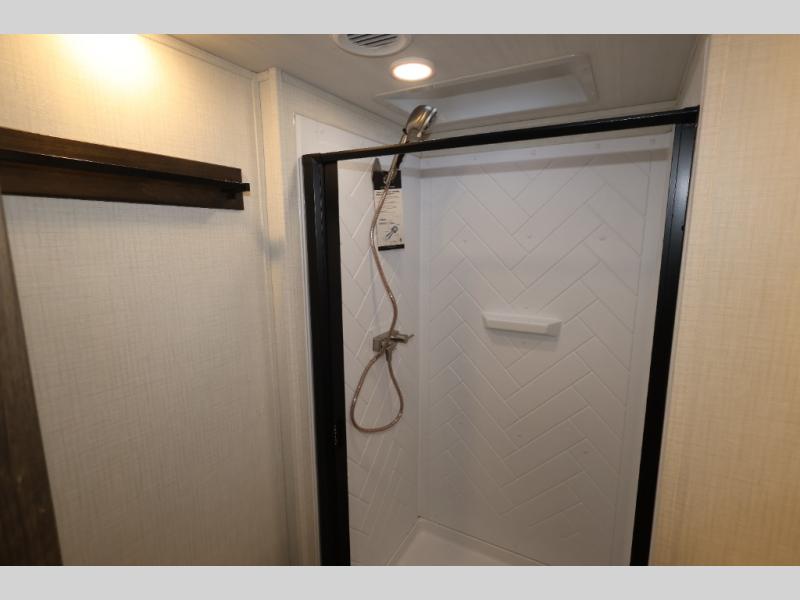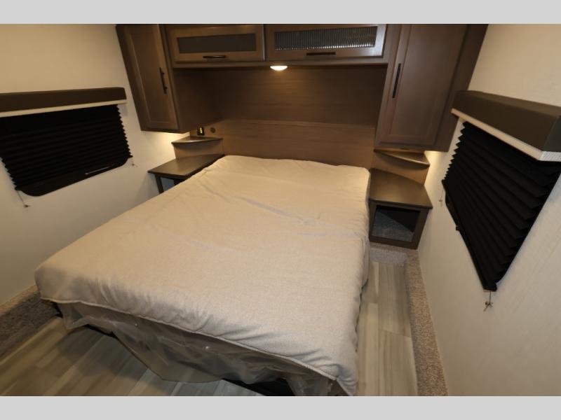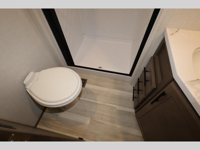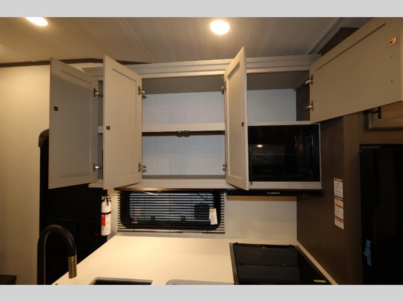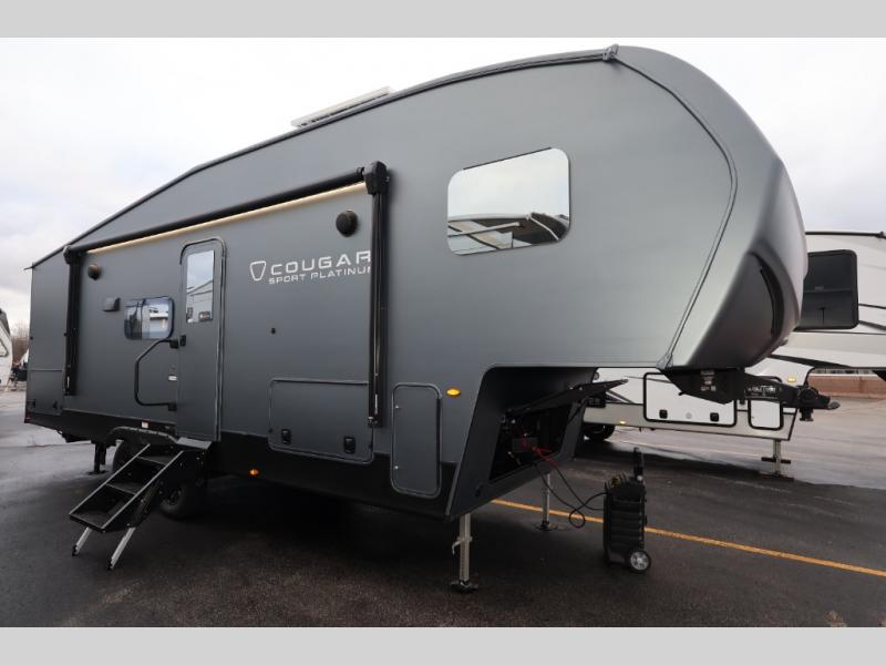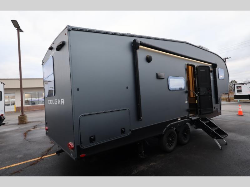 The Cougar Sport structural I-beam frame with stamped steel cross-members and outriggers, plus its AlphaPly roof membrane are what active RVers love about the construction of the Cougar line. The Cougar Sport models are no exception when it comes to a great package, as well as being smaller and lighter weight than their big brother Cougar models. A one-piece, heated and enclosed polypropylene underbelly will add protection against the elements, and the electric stabilizer jacks will provide more stability. On the inside, residential shaker style hardwood cabinet doors and decorative crown molding, plus seamless pressed countertops and an on-demand water heater will make your unit feel even more like home. You are also sure to appreciate the shiplap style decorative accent wall behind the bed, a porcelain foot flush toilet in the bathroom, plus residential kitchen hardware, and so much more.