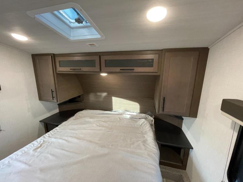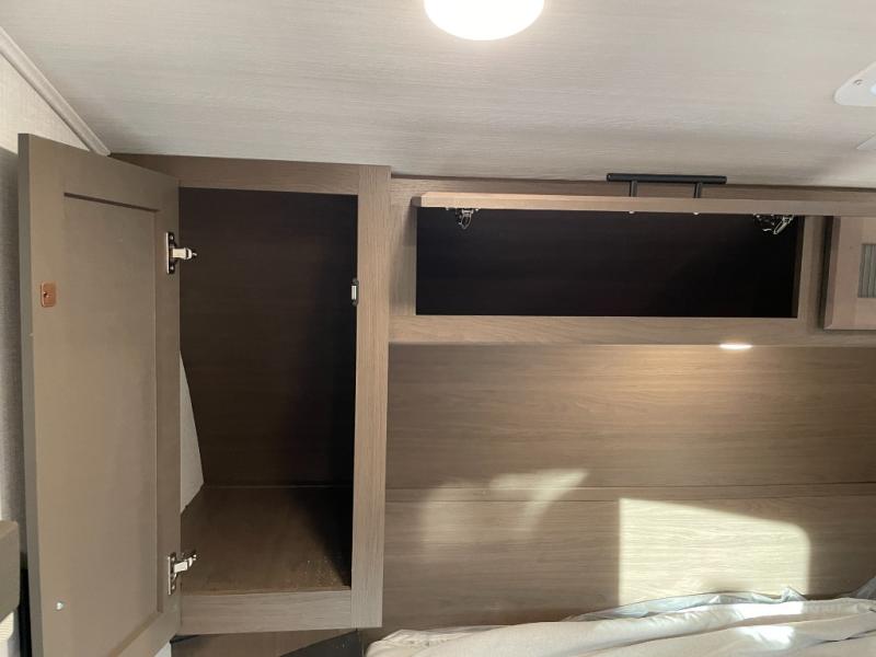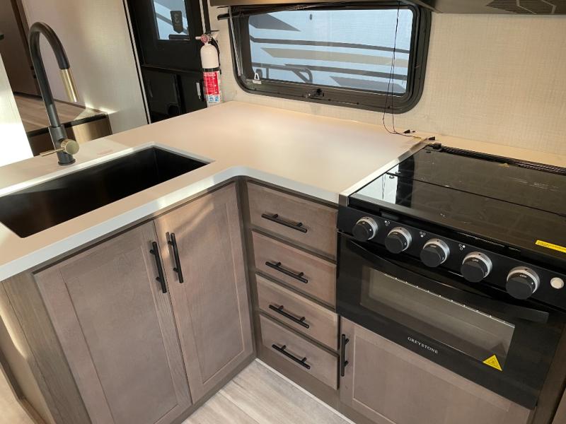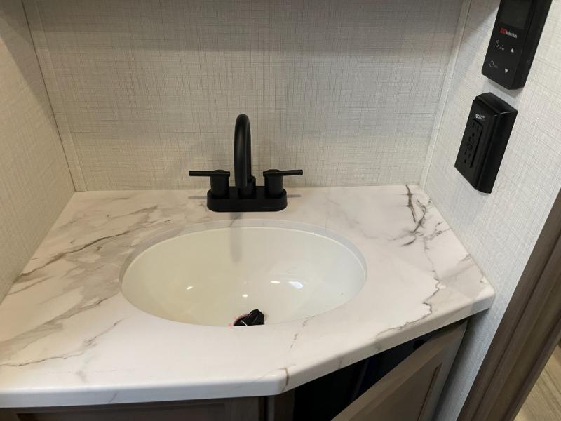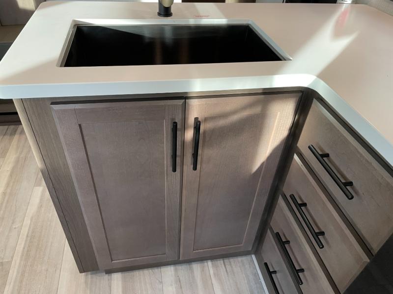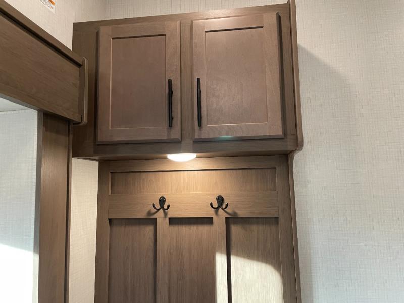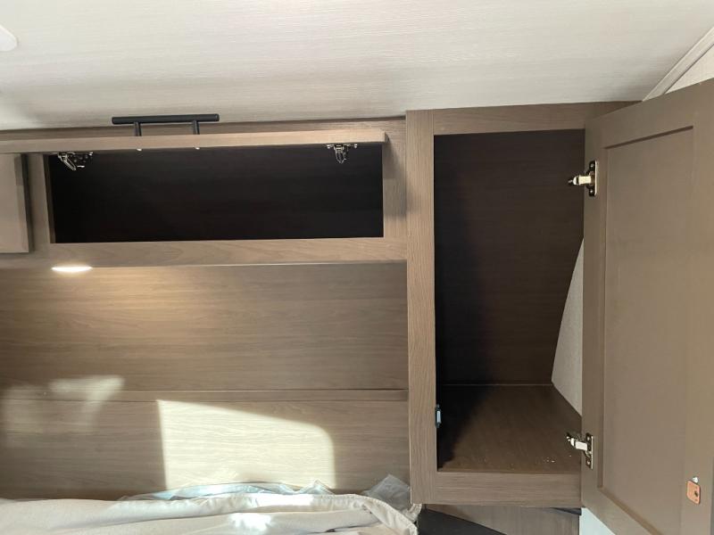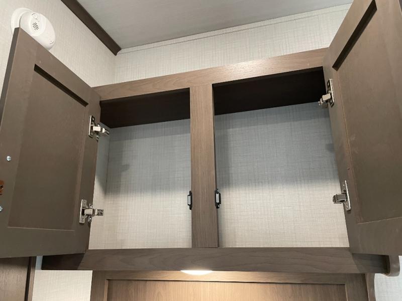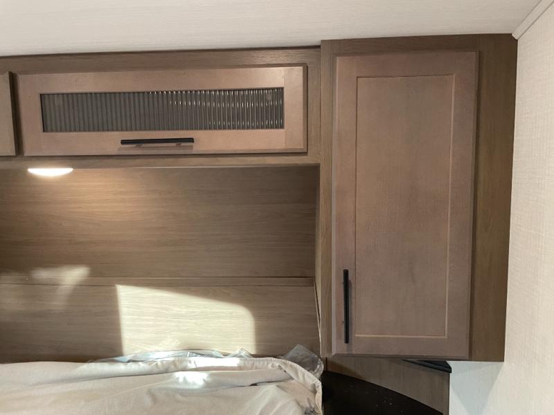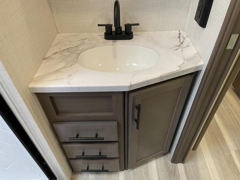 The Cougar Sport structural I-beam frame with stamped steel cross-members and outriggers, plus its AlphaPly roof membrane are what active RVers love about the construction of the Cougar line. The Cougar Sport models are no exception when it comes to a great package, as well as being smaller and lighter weight than their big brother Cougar models. A one-piece, heated and enclosed polypropylene underbelly will add protection against the elements, and the electric stabilizer jacks will provide more stability. On the inside, residential shaker style hardwood cabinet doors and decorative crown molding, plus seamless pressed countertops and an on-demand water heater will make your unit feel even more like home. You are also sure to appreciate the shiplap style decorative accent wall behind the bed, a porcelain foot flush toilet in the bathroom, plus residential kitchen hardware, and so much more.