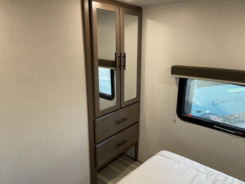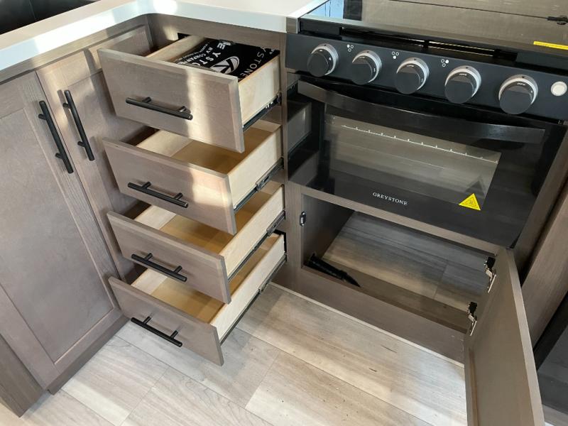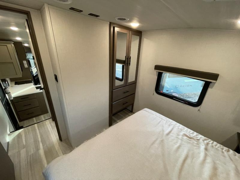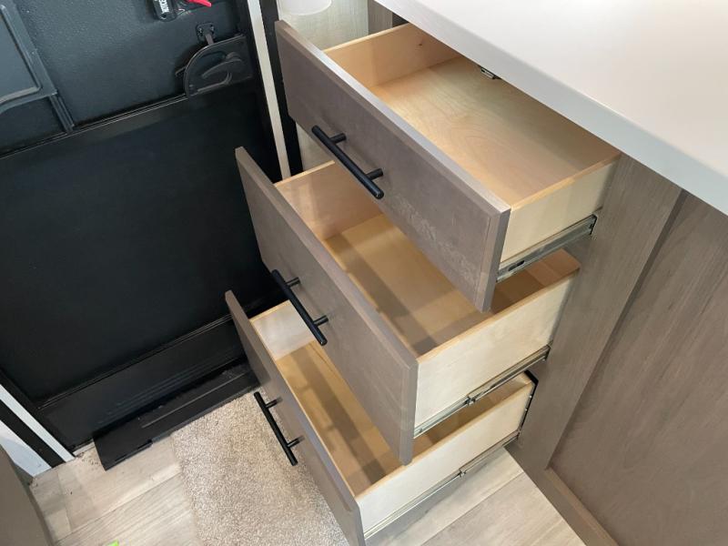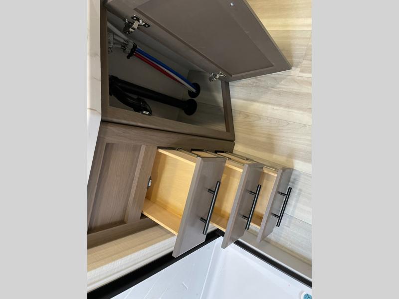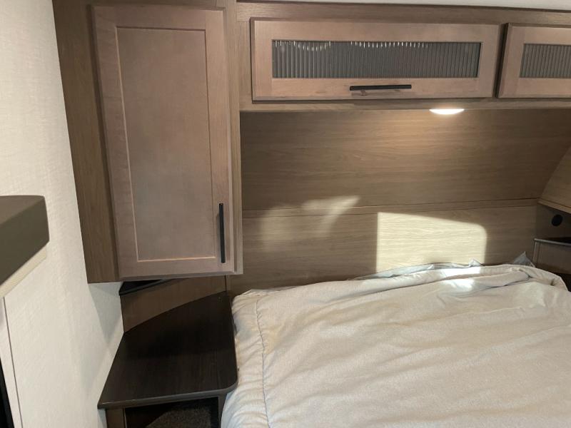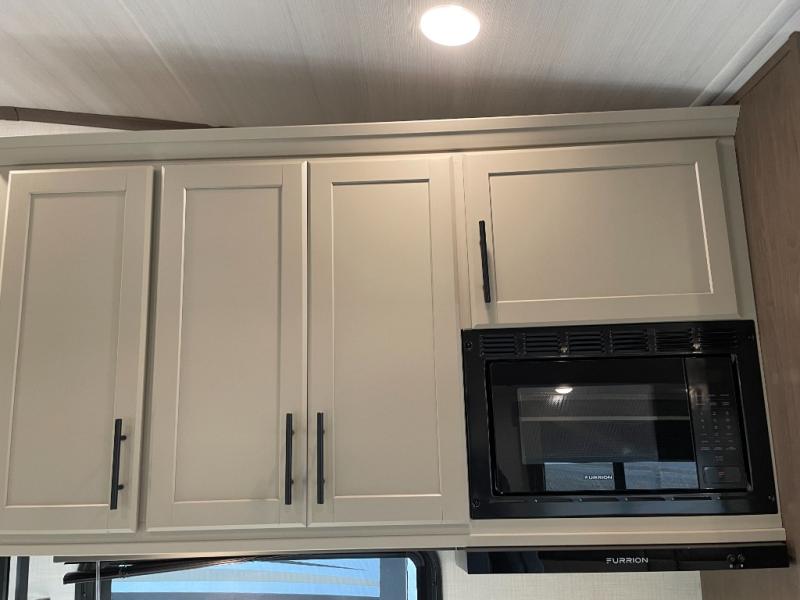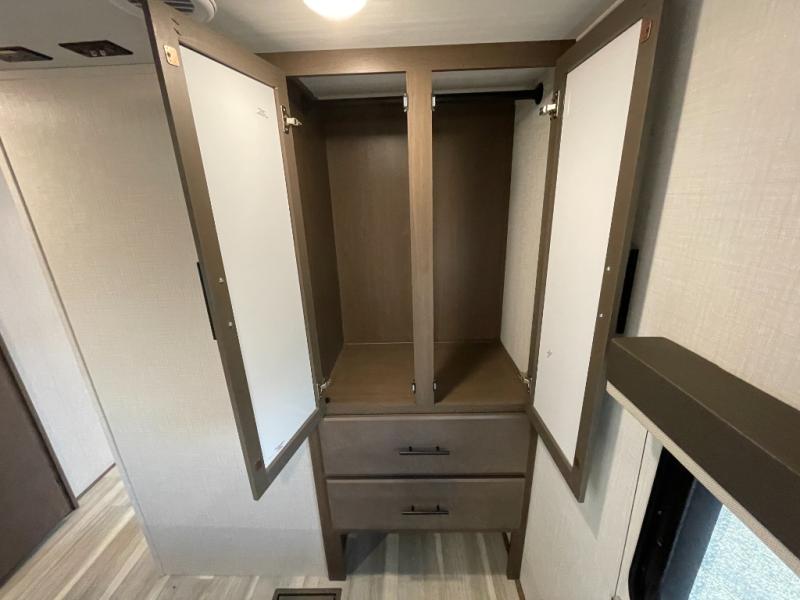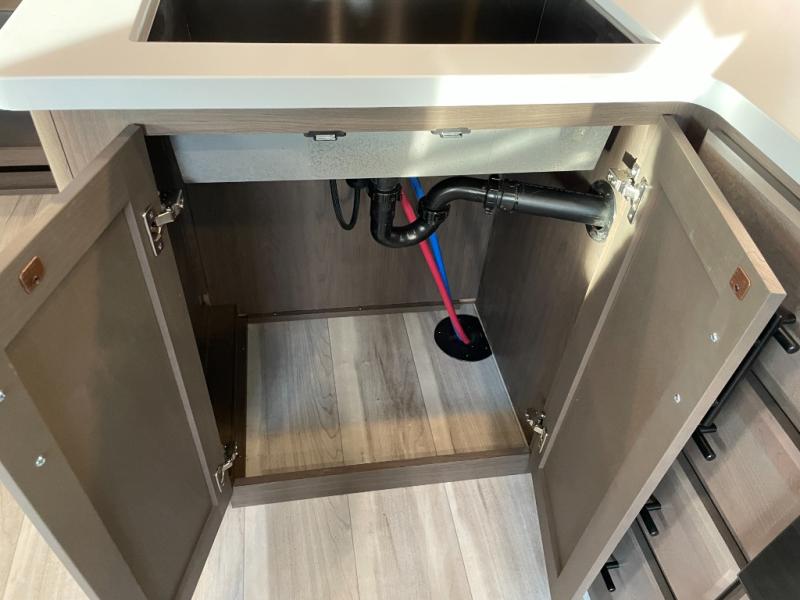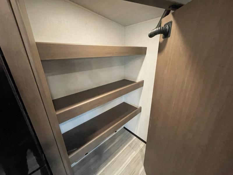 The Cougar Sport structural I-beam frame with stamped steel cross-members and outriggers, plus its AlphaPly roof membrane are what active RVers love about the construction of the Cougar line. The Cougar Sport models are no exception when it comes to a great package, as well as being smaller and lighter weight than their big brother Cougar models. A one-piece, heated and enclosed polypropylene underbelly will add protection against the elements, and the electric stabilizer jacks will provide more stability. On the inside, residential shaker style hardwood cabinet doors and decorative crown molding, plus seamless pressed countertops and an on-demand water heater will make your unit feel even more like home. You are also sure to appreciate the shiplap style decorative accent wall behind the bed, a porcelain foot flush toilet in the bathroom, plus residential kitchen hardware, and so much more.
