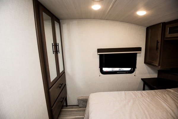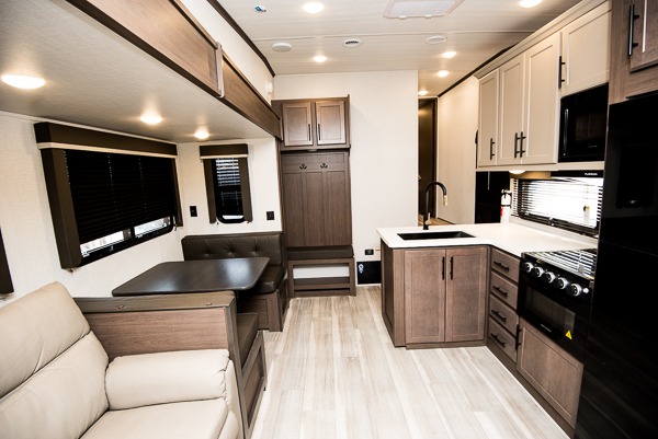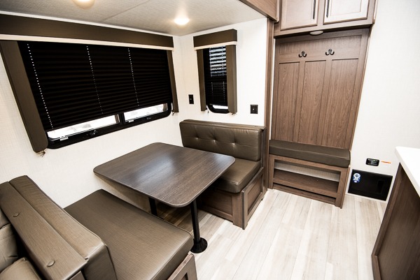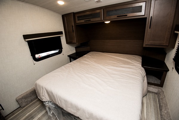 The Cougar Sport structural I-beam frame with stamped steel cross-members and outriggers, plus its AlphaPly roof membrane are what active RVers love about the construction of the Cougar line. The Cougar Sport models are no exception when it comes to a great package, as well as being smaller and lighter weight than their big brother Cougar models. A one-piece, heated and enclosed polypropylene underbelly will add protection against the elements, and the electric stabilizer jacks will provide more stability. On the inside, residential shaker style hardwood cabinet doors and decorative crown molding, plus seamless pressed countertops and an on-demand water heater will make your unit feel even more like home. You are also sure to appreciate the shiplap style decorative accent wall behind the bed, a porcelain foot flush toilet in the bathroom, plus residential kitchen hardware, and so much more.