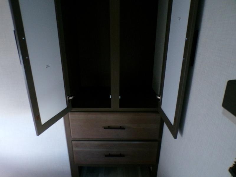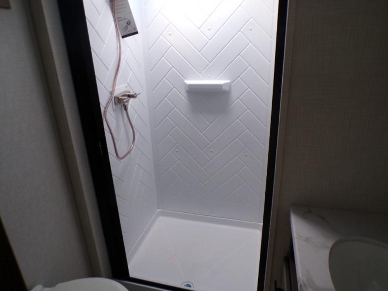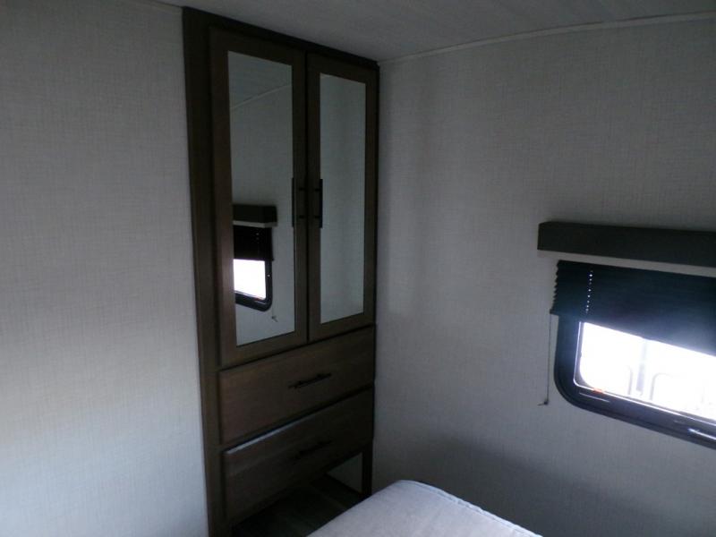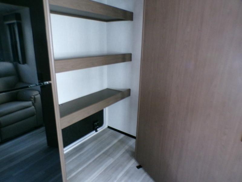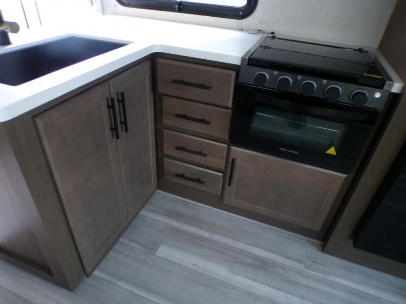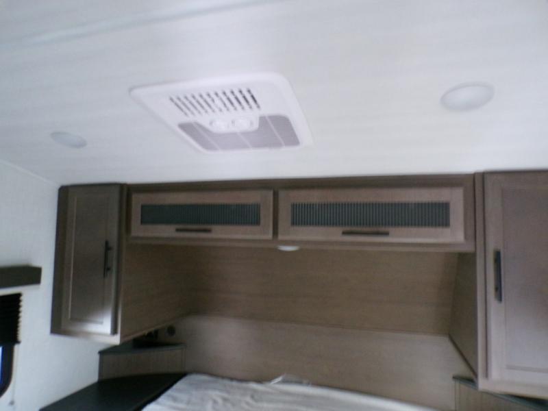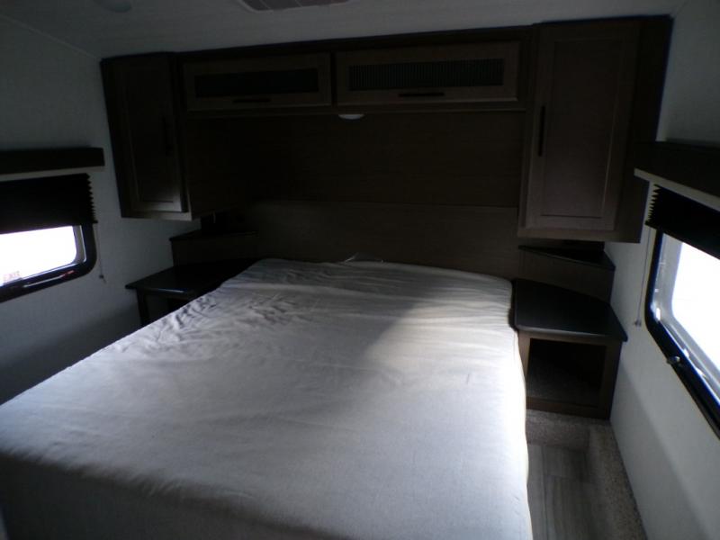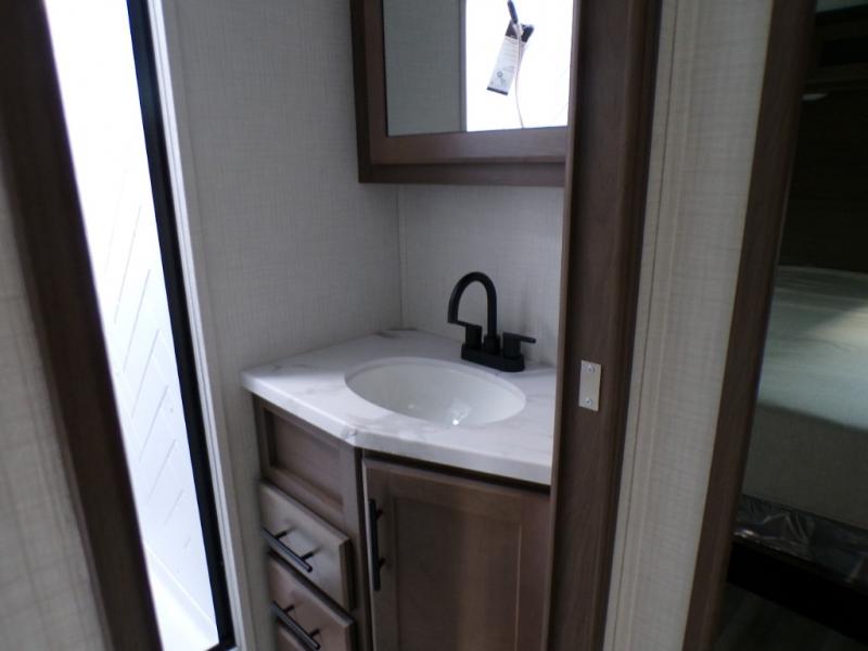 The Cougar Sport structural I-beam frame with stamped steel cross-members and outriggers, plus its AlphaPly roof membrane are what active RVers love about the construction of the Cougar line. The Cougar Sport models are no exception when it comes to a great package, as well as being smaller and lighter weight than their big brother Cougar models. A one-piece, heated and enclosed polypropylene underbelly will add protection against the elements, and the electric stabilizer jacks will provide more stability. On the inside, residential shaker style hardwood cabinet doors and decorative crown molding, plus seamless pressed countertops and an on-demand water heater will make your unit feel even more like home. You are also sure to appreciate the shiplap style decorative accent wall behind the bed, a porcelain foot flush toilet in the bathroom, plus residential kitchen hardware, and so much more.