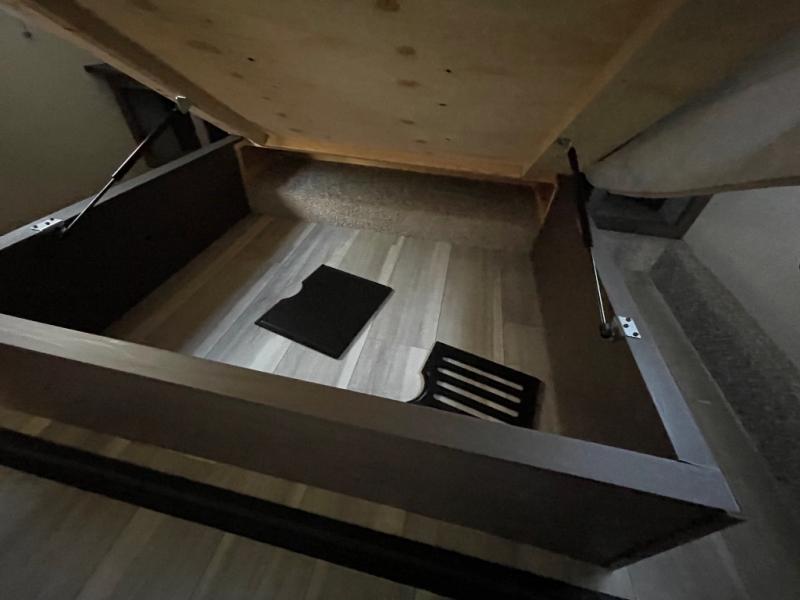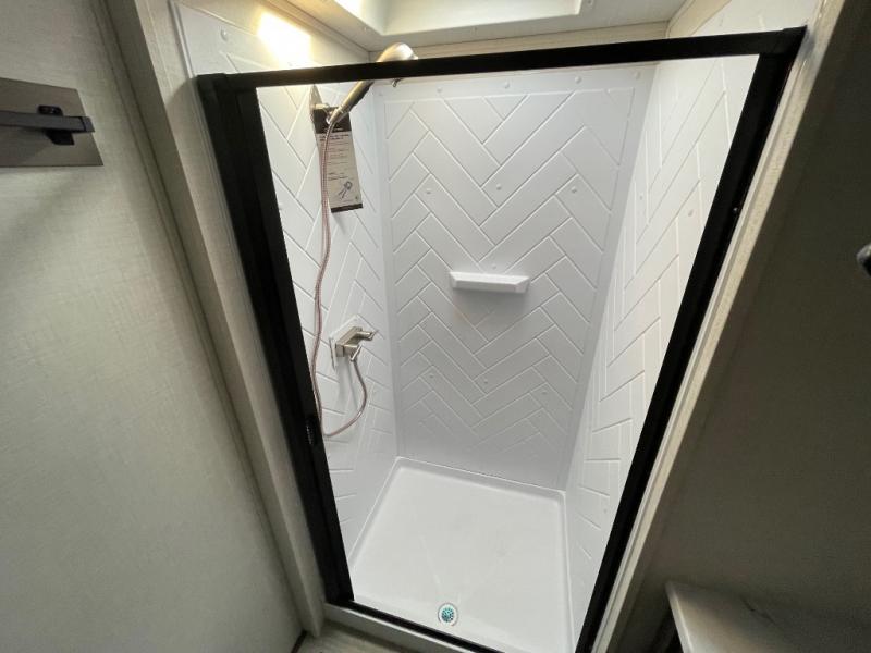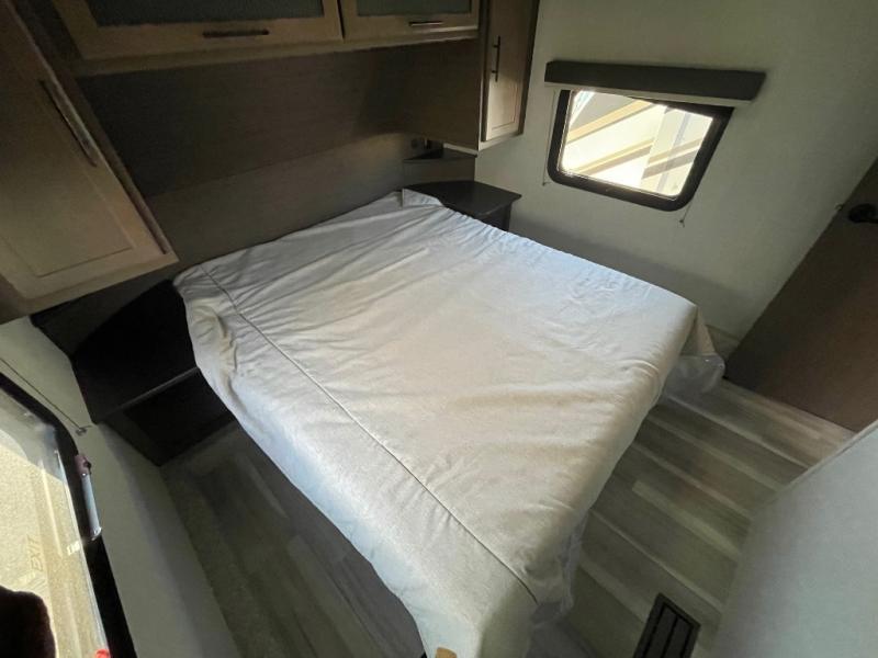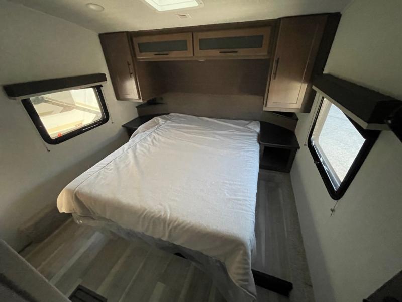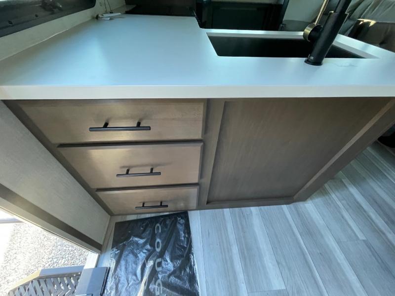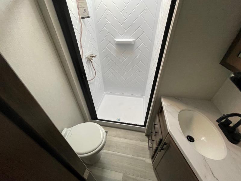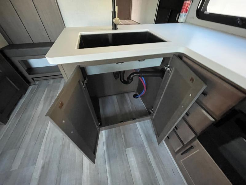 The Cougar Sport structural I-beam frame with stamped steel cross-members and outriggers, plus its AlphaPly roof membrane are what active RVers love about the construction of the Cougar line. The Cougar Sport models are no exception when it comes to a great package, as well as being smaller and lighter weight than their big brother Cougar models. A one-piece, heated and enclosed polypropylene underbelly will add protection against the elements, and the electric stabilizer jacks will provide more stability. On the inside, residential shaker style hardwood cabinet doors and decorative crown molding, plus seamless pressed countertops and an on-demand water heater will make your unit feel even more like home. You are also sure to appreciate the shiplap style decorative accent wall behind the bed, a porcelain foot flush toilet in the bathroom, plus residential kitchen hardware, and so much more.