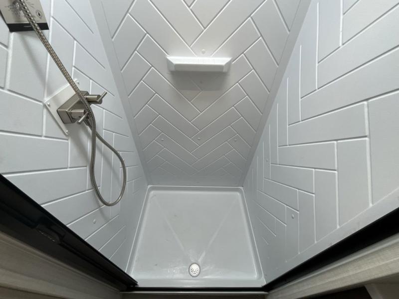 The Cougar Sport structural I-beam frame with stamped steel cross-members and outriggers, plus its AlphaPly roof membrane are what active RVers love about the construction of the Cougar line. The Cougar Sport models are no exception when it comes to a great package, as well as being smaller and lighter weight than their big brother Cougar models. A one-piece, heated and enclosed polypropylene underbelly will add protection against the elements, and the electric stabilizer jacks will provide more stability. On the inside, residential shaker style hardwood cabinet doors and decorative crown molding, plus seamless pressed countertops and an on-demand water heater will make your unit feel even more like home. You are also sure to appreciate the shiplap style decorative accent wall behind the bed, a porcelain foot flush toilet in the bathroom, plus residential kitchen hardware, and so much more.