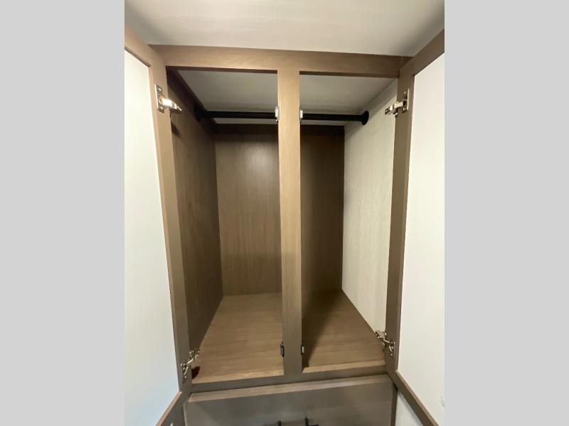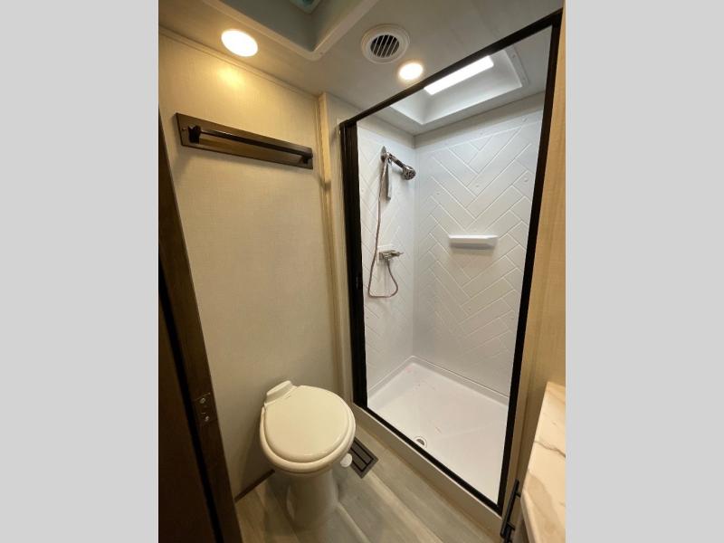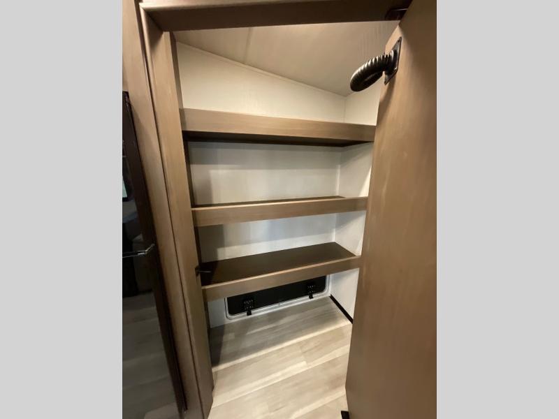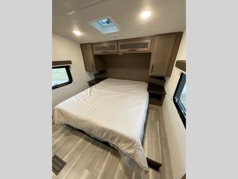 The Cougar Sport structural I-beam frame with stamped steel cross-members and outriggers, plus its AlphaPly roof membrane are what active RVers love about the construction of the Cougar line. The Cougar Sport models are no exception when it comes to a great package, as well as being smaller and lighter weight than their big brother Cougar models. A one-piece, heated and enclosed polypropylene underbelly will add protection against the elements, and the electric stabilizer jacks will provide more stability. On the inside, residential shaker style hardwood cabinet doors and decorative crown molding, plus seamless pressed countertops and an on-demand water heater will make your unit feel even more like home. You are also sure to appreciate the shiplap style decorative accent wall behind the bed, a porcelain foot flush toilet in the bathroom, plus residential kitchen hardware, and so much more.