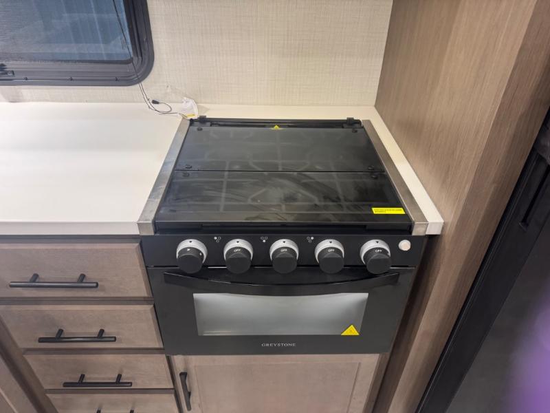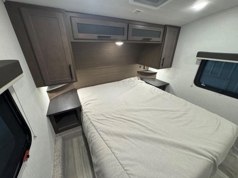 The Cougar Sport structural I-beam frame with stamped steel cross-members and outriggers, plus its AlphaPly roof membrane are what active RVers love about the construction of the Cougar line. The Cougar Sport models are no exception when it comes to a great package, as well as being smaller and lighter weight than their big brother Cougar models. A one-piece, heated and enclosed polypropylene underbelly will add protection against the elements, and the electric stabilizer jacks will provide more stability. On the inside, residential shaker style hardwood cabinet doors and decorative crown molding, plus seamless pressed countertops and an on-demand water heater will make your unit feel even more like home. You are also sure to appreciate the shiplap style decorative accent wall behind the bed, a porcelain foot flush toilet in the bathroom, plus residential kitchen hardware, and so much more.