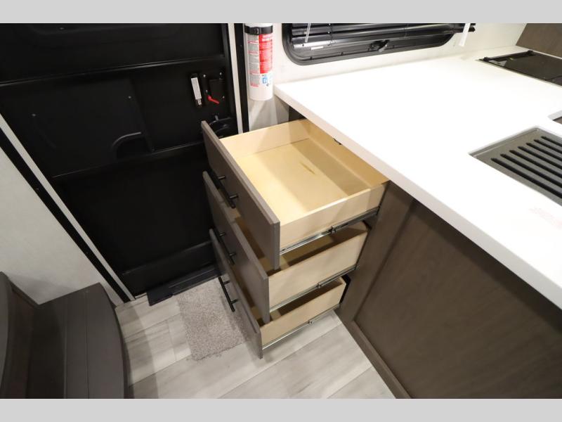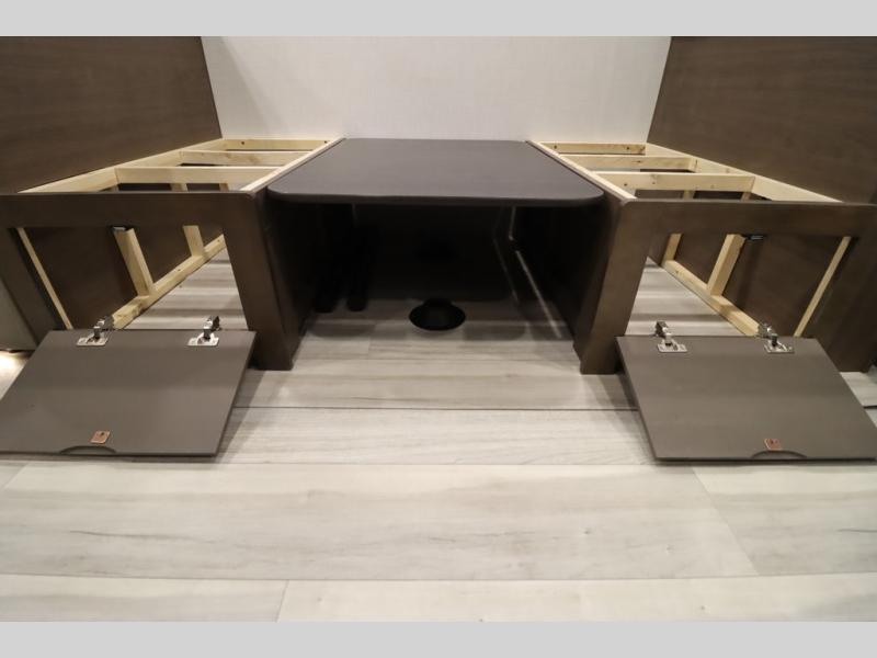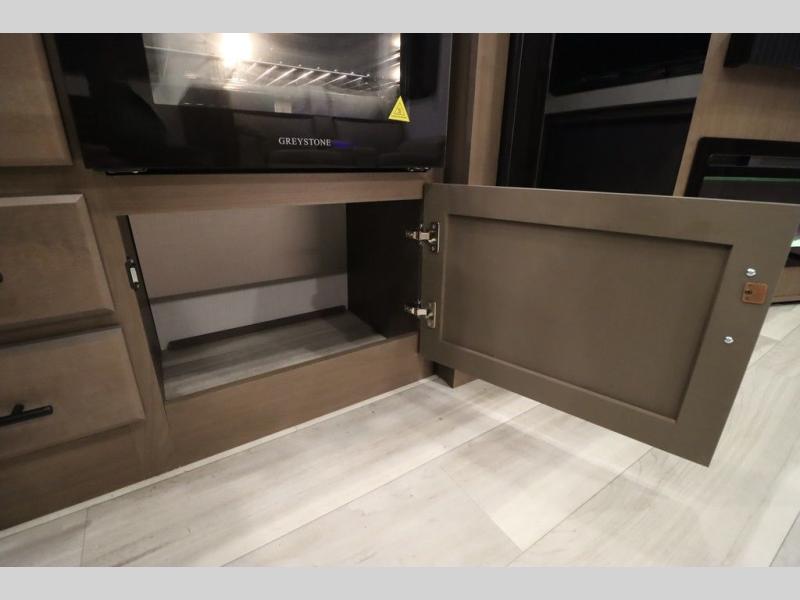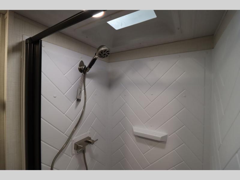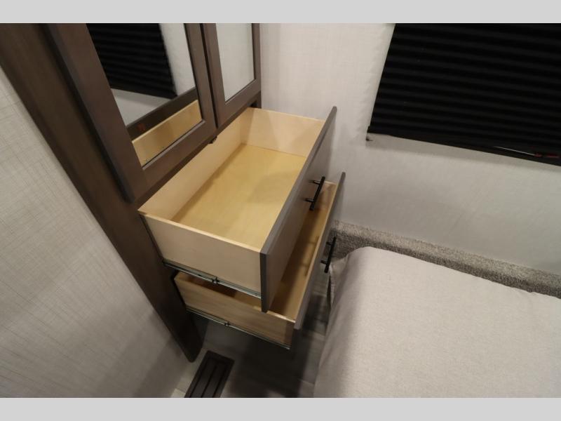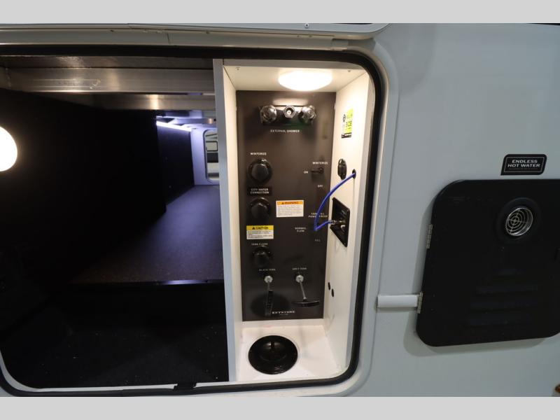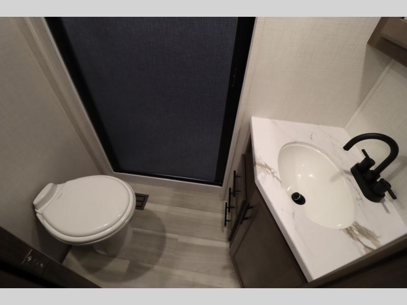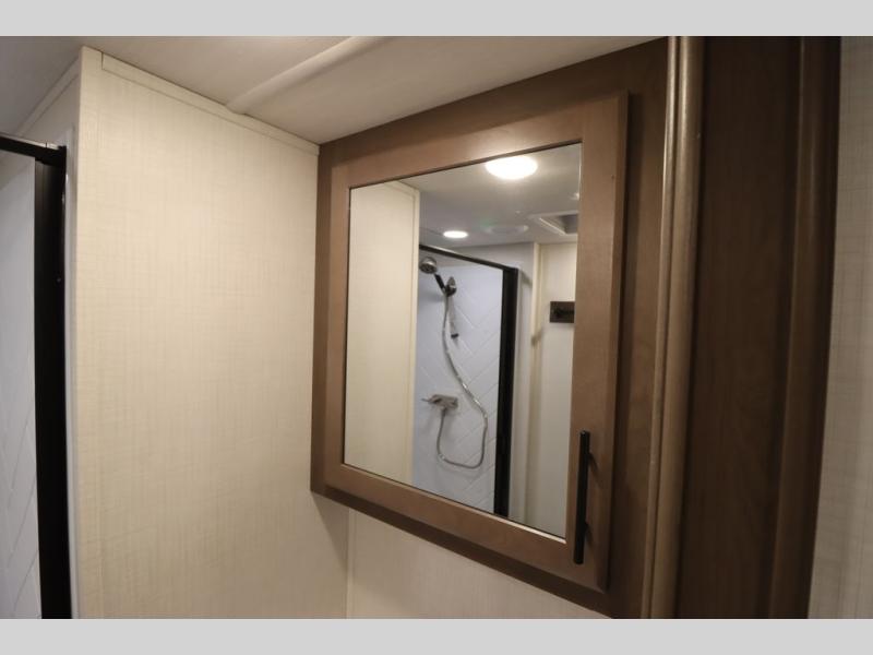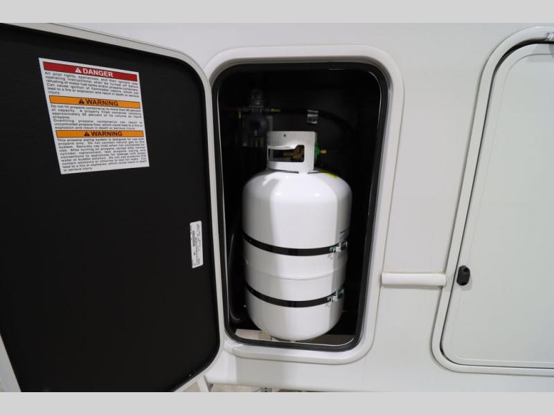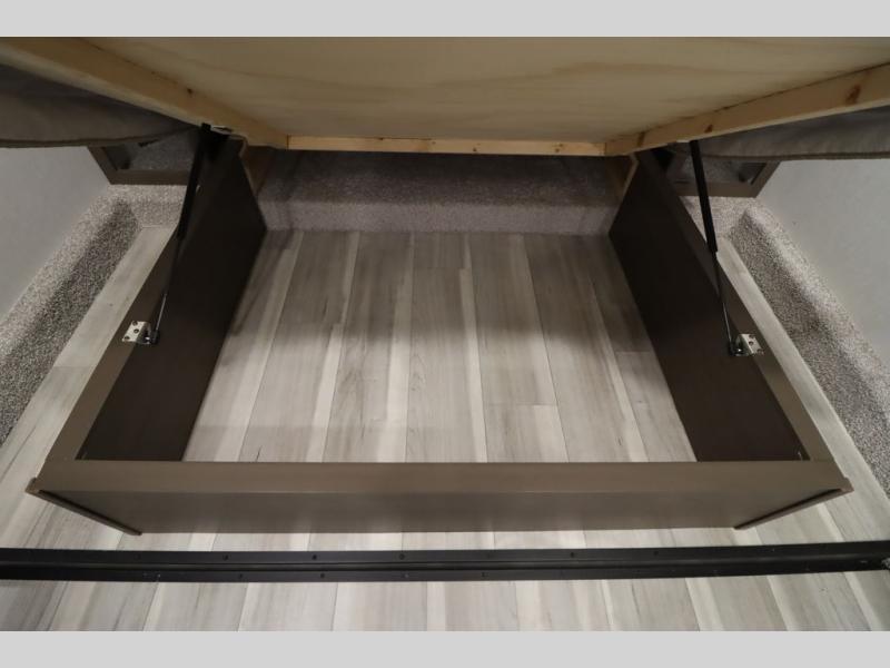The Cougar Sport structural I-beam frame with stamped steel cross-members and outriggers, plus its AlphaPly roof membrane are what active RVers love about the construction of the Cougar line. The Cougar Sport models are no exception when it comes to a great package, as well as being smaller and lighter weight than their big brother Cougar models. A one-piece, heated and enclosed polypropylene underbelly will add protection against the elements, and the electric stabilizer jacks will provide more stability. On the inside, residential shaker style hardwood cabinet doors and decorative crown molding, plus seamless pressed countertops and an on-demand water heater will make your unit feel even more like home. You are also sure to appreciate the shiplap style decorative accent wall behind the bed, a porcelain foot flush toilet in the bathroom, plus residential kitchen hardware, and so much more.