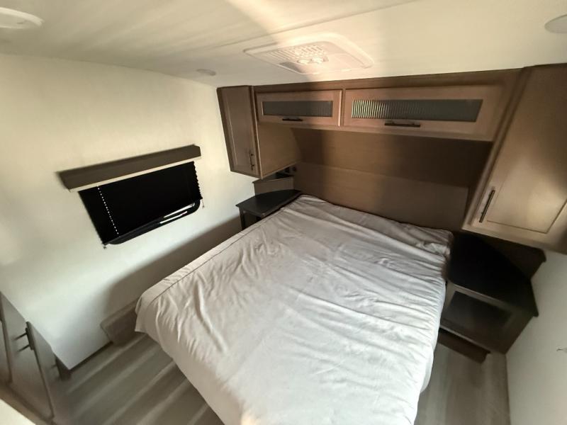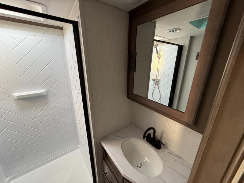 The Cougar Sport structural I-beam frame with stamped steel cross-members and outriggers, plus its AlphaPly roof membrane are what active RVers love about the construction of the Cougar line. The Cougar Sport models are no exception when it comes to a great package, as well as being smaller and lighter weight than their big brother Cougar models. A one-piece, heated and enclosed polypropylene underbelly will add protection against the elements, and the electric stabilizer jacks will provide more stability. On the inside, residential shaker style hardwood cabinet doors and decorative crown molding, plus seamless pressed countertops and an on-demand water heater will make your unit feel even more like home. You are also sure to appreciate the shiplap style decorative accent wall behind the bed, a porcelain foot flush toilet in the bathroom, plus residential kitchen hardware, and so much more.