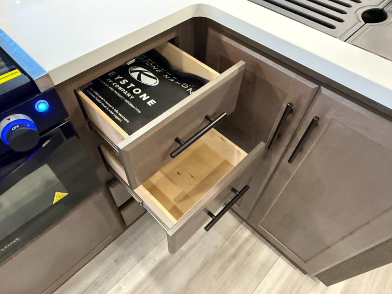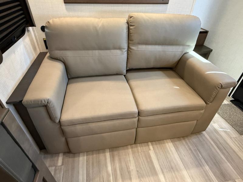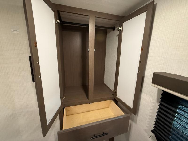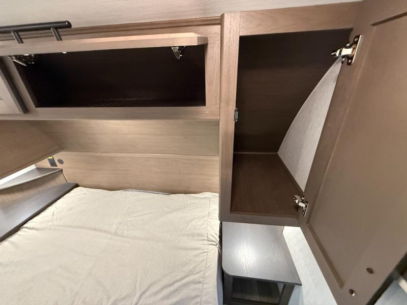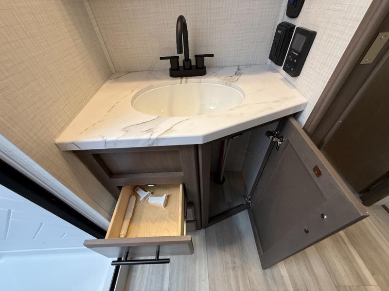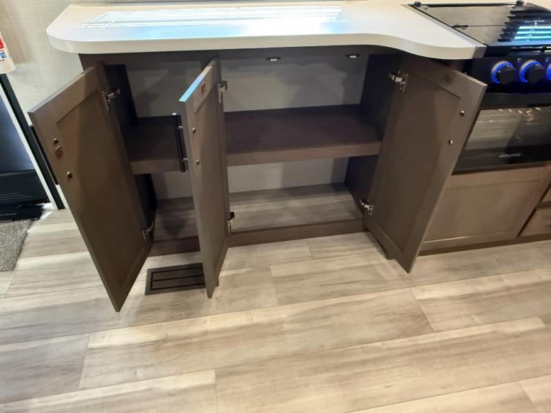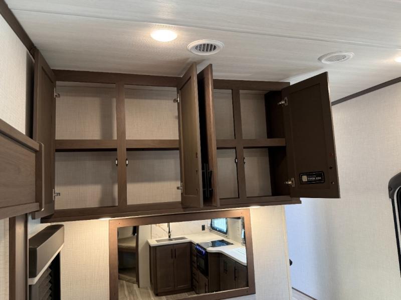 The Cougar Sport structural I-beam frame with stamped steel cross-members and outriggers, plus its AlphaPly roof membrane are what active RVers love about the construction of the Cougar line. The Cougar Sport models are no exception when it comes to a great package, as well as being smaller and lighter weight than their big brother Cougar models. A one-piece, heated and enclosed polypropylene underbelly will add protection against the elements, and the electric stabilizer jacks will provide more stability. On the inside, residential shaker style hardwood cabinet doors and decorative crown molding, plus seamless pressed countertops and an on-demand water heater will make your unit feel even more like home. You are also sure to appreciate the shiplap style decorative accent wall behind the bed, a porcelain foot flush toilet in the bathroom, plus residential kitchen hardware, and so much more.