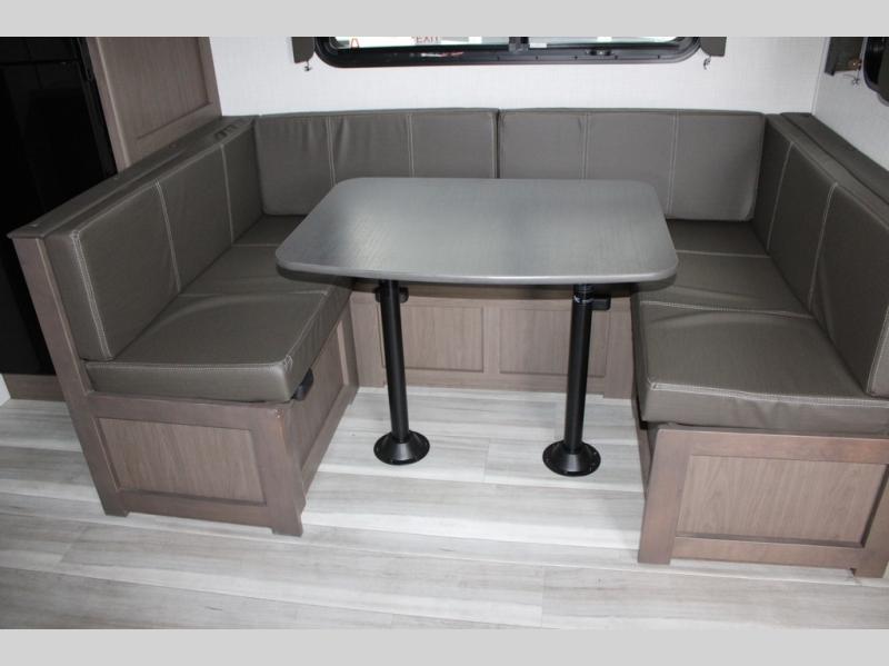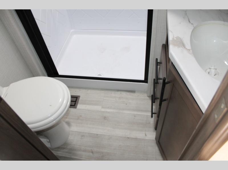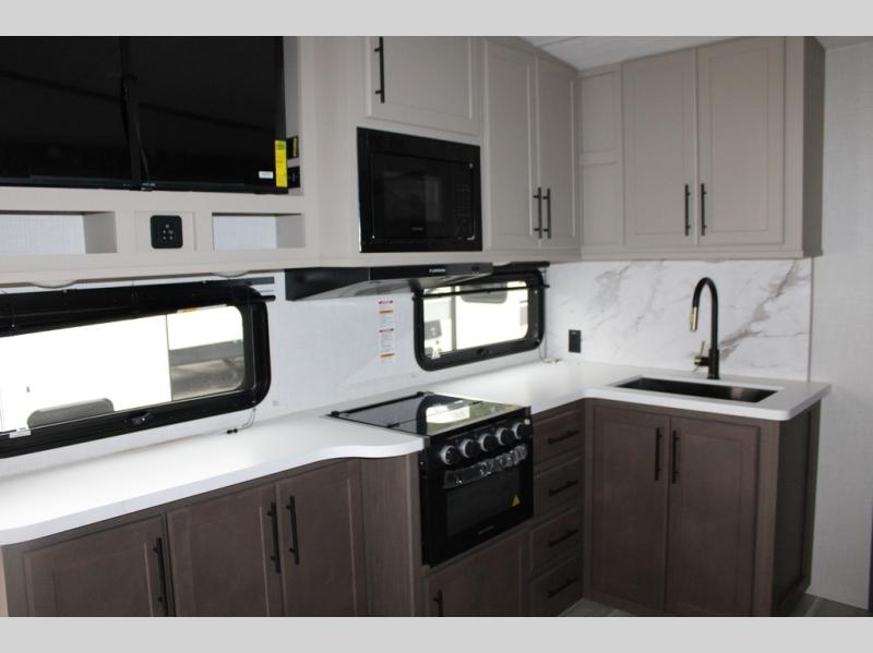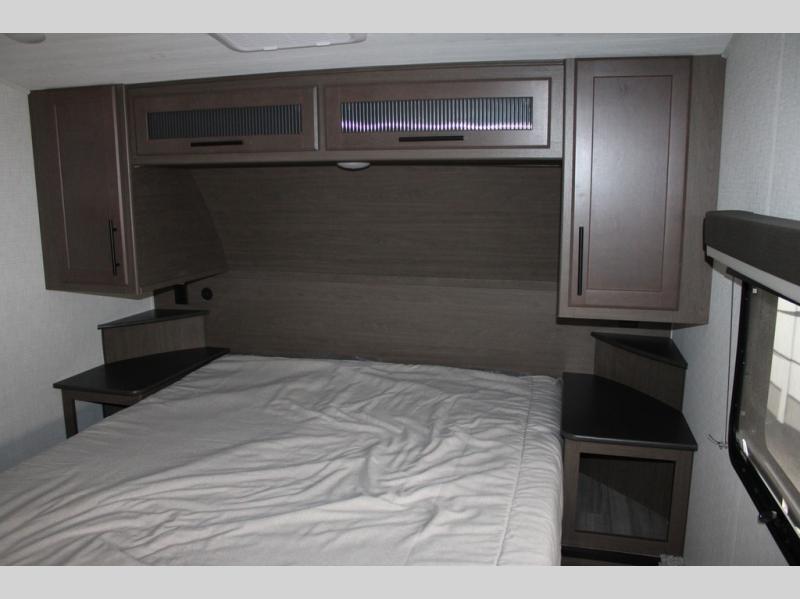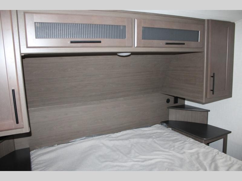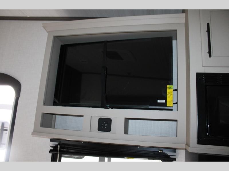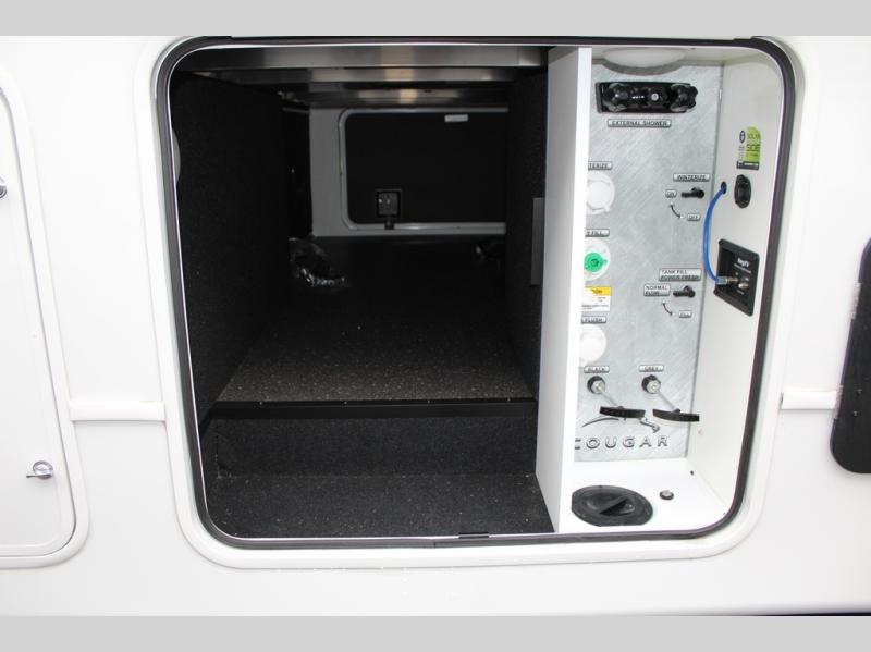 The Cougar Sport structural I-beam frame with stamped steel cross-members and outriggers, plus its AlphaPly roof membrane are what active RVers love about the construction of the Cougar line. The Cougar Sport models are no exception when it comes to a great package, as well as being smaller and lighter weight than their big brother Cougar models. A one-piece, heated and enclosed polypropylene underbelly will add protection against the elements, and the electric stabilizer jacks will provide more stability. On the inside, residential shaker style hardwood cabinet doors and decorative crown molding, plus seamless pressed countertops and an on-demand water heater will make your unit feel even more like home. You are also sure to appreciate the shiplap style decorative accent wall behind the bed, a porcelain foot flush toilet in the bathroom, plus residential kitchen hardware, and so much more.