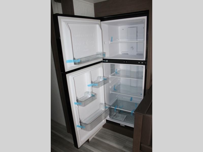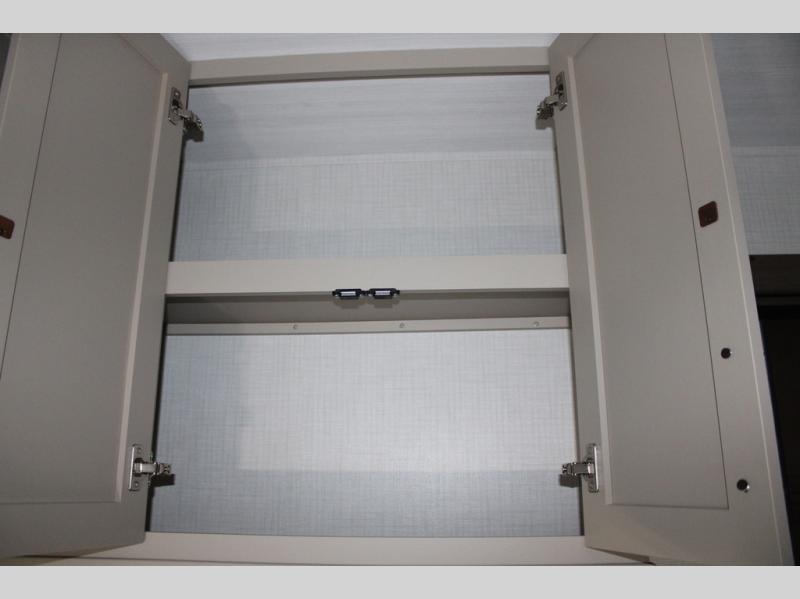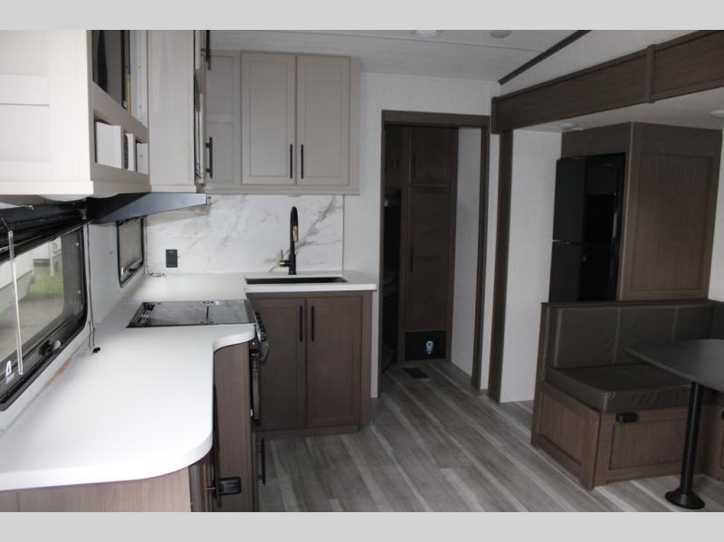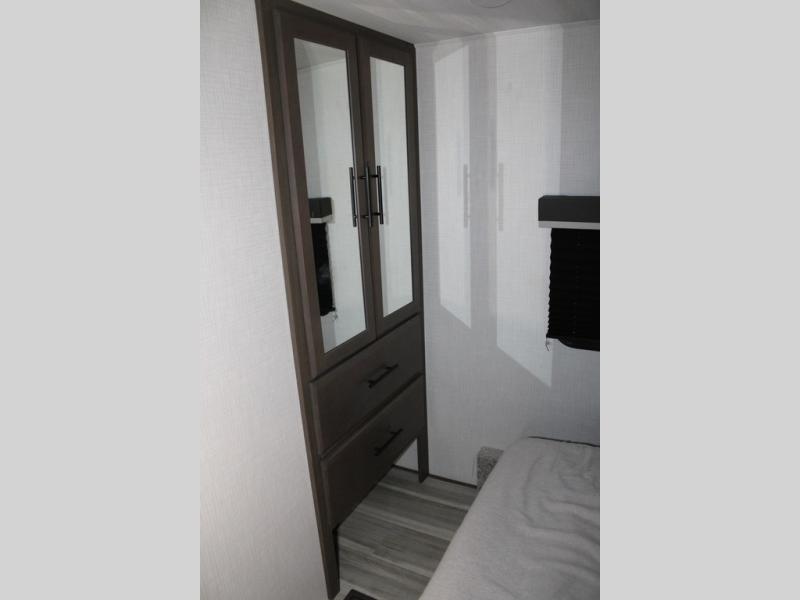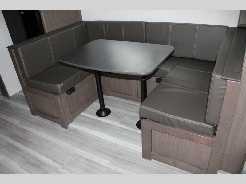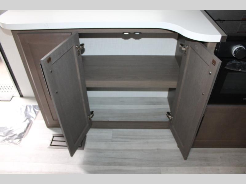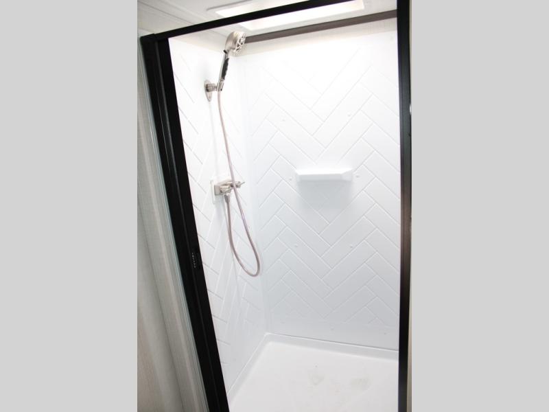 The Cougar Sport structural I-beam frame with stamped steel cross-members and outriggers, plus its AlphaPly roof membrane are what active RVers love about the construction of the Cougar line. The Cougar Sport models are no exception when it comes to a great package, as well as being smaller and lighter weight than their big brother Cougar models. A one-piece, heated and enclosed polypropylene underbelly will add protection against the elements, and the electric stabilizer jacks will provide more stability. On the inside, residential shaker style hardwood cabinet doors and decorative crown molding, plus seamless pressed countertops and an on-demand water heater will make your unit feel even more like home. You are also sure to appreciate the shiplap style decorative accent wall behind the bed, a porcelain foot flush toilet in the bathroom, plus residential kitchen hardware, and so much more.