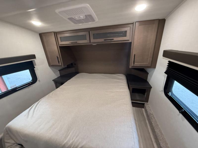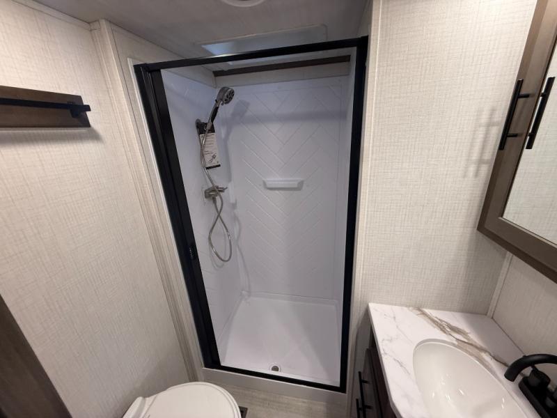 The Cougar Sport structural I-beam frame with stamped steel cross-members and outriggers, plus its AlphaPly roof membrane are what active RVers love about the construction of the Cougar line. The Cougar Sport models are no exception when it comes to a great package, as well as being smaller and lighter weight than their big brother Cougar models. A one-piece, heated and enclosed polypropylene underbelly will add protection against the elements, and the electric stabilizer jacks will provide more stability. On the inside, residential shaker style hardwood cabinet doors and decorative crown molding, plus seamless pressed countertops and an on-demand water heater will make your unit feel even more like home. You are also sure to appreciate the shiplap style decorative accent wall behind the bed, a porcelain foot flush toilet in the bathroom, plus residential kitchen hardware, and so much more.