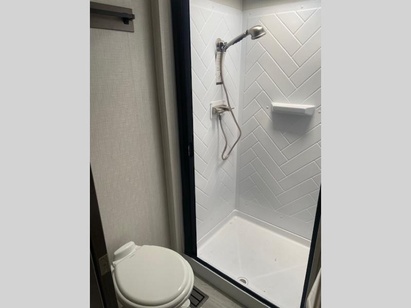 The Cougar Sport structural I-beam frame with stamped steel cross-members and outriggers, plus its AlphaPly roof membrane are what active RVers love about the construction of the Cougar line. The Cougar Sport models are no exception when it comes to a great package, as well as being smaller and lighter weight than their big brother Cougar models. A one-piece, heated and enclosed polypropylene underbelly will add protection against the elements, and the electric stabilizer jacks will provide more stability. On the inside, residential shaker style hardwood cabinet doors and decorative crown molding, plus seamless pressed countertops and an on-demand water heater will make your unit feel even more like home. You are also sure to appreciate the shiplap style decorative accent wall behind the bed, a porcelain foot flush toilet in the bathroom, plus residential kitchen hardware, and so much more.