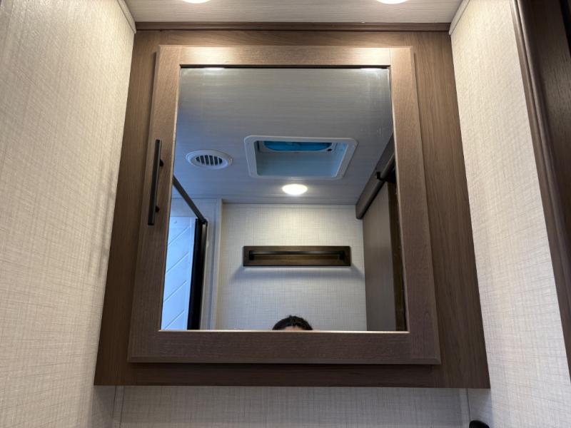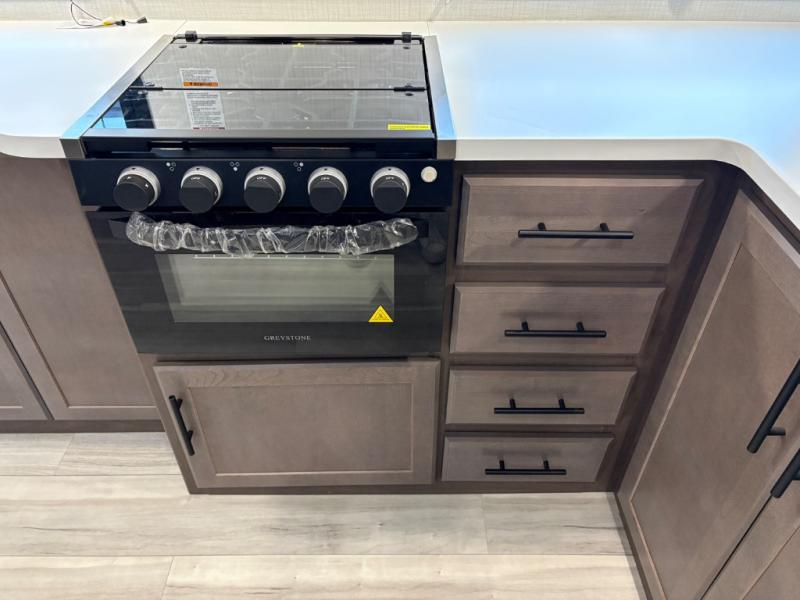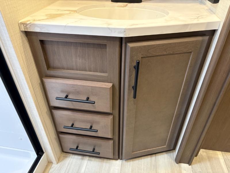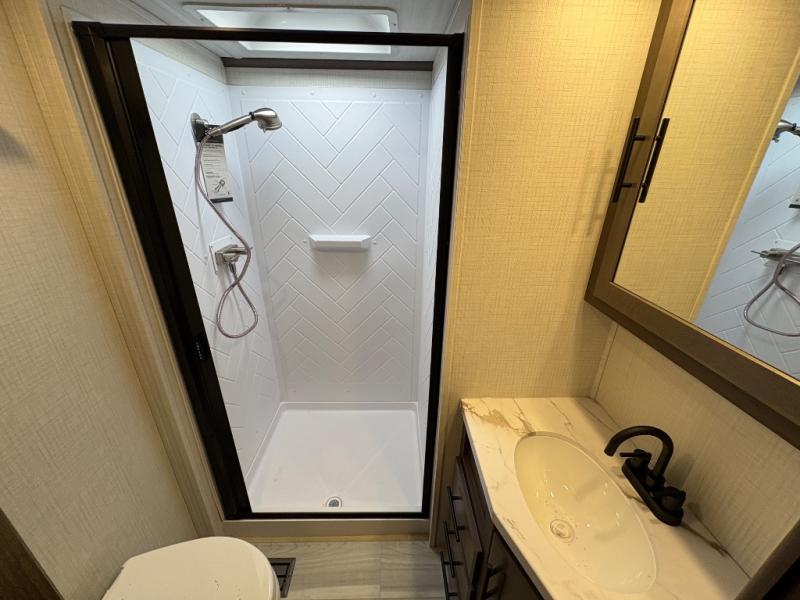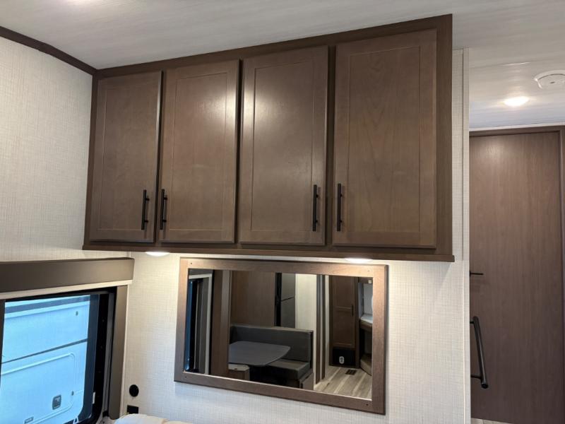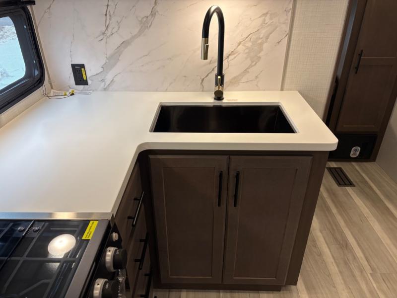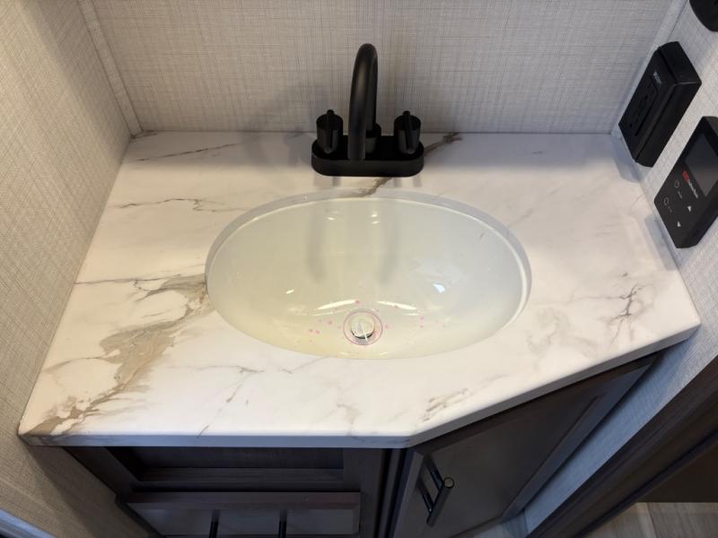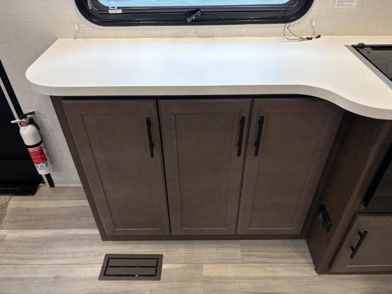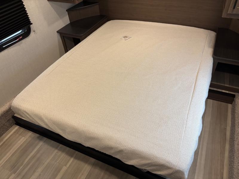 The Cougar Sport structural I-beam frame with stamped steel cross-members and outriggers, plus its AlphaPly roof membrane are what active RVers love about the construction of the Cougar line. The Cougar Sport models are no exception when it comes to a great package, as well as being smaller and lighter weight than their big brother Cougar models. A one-piece, heated and enclosed polypropylene underbelly will add protection against the elements, and the electric stabilizer jacks will provide more stability. On the inside, residential shaker style hardwood cabinet doors and decorative crown molding, plus seamless pressed countertops and an on-demand water heater will make your unit feel even more like home. You are also sure to appreciate the shiplap style decorative accent wall behind the bed, a porcelain foot flush toilet in the bathroom, plus residential kitchen hardware, and so much more.