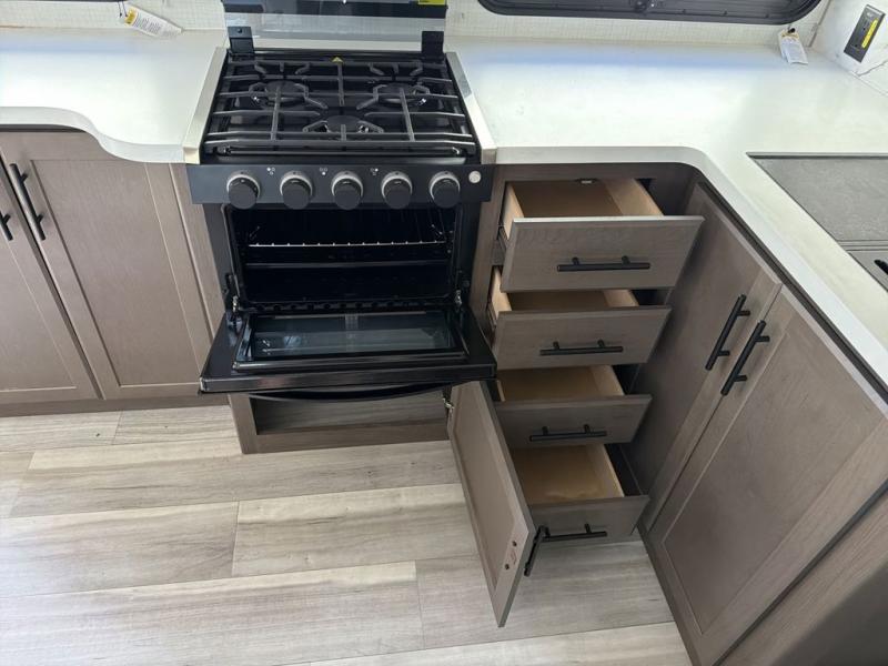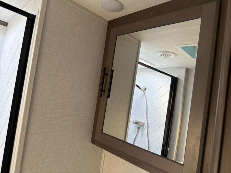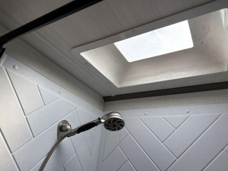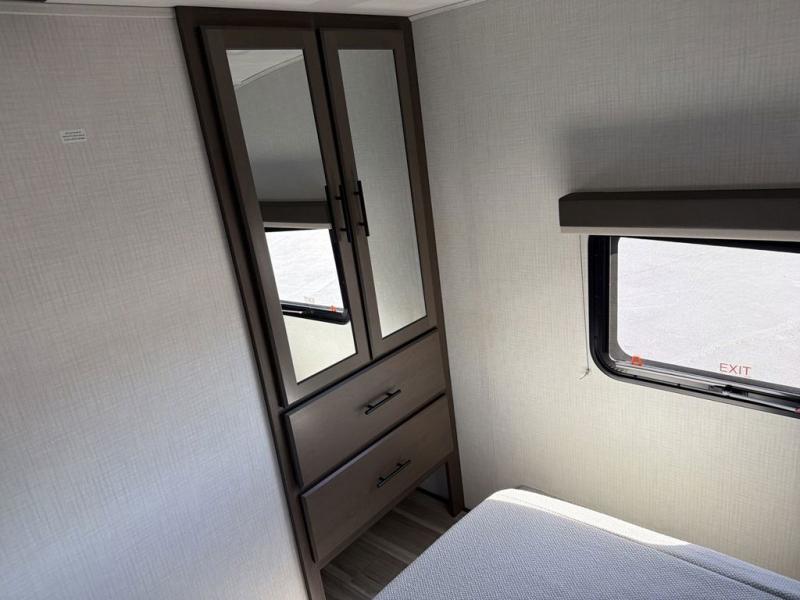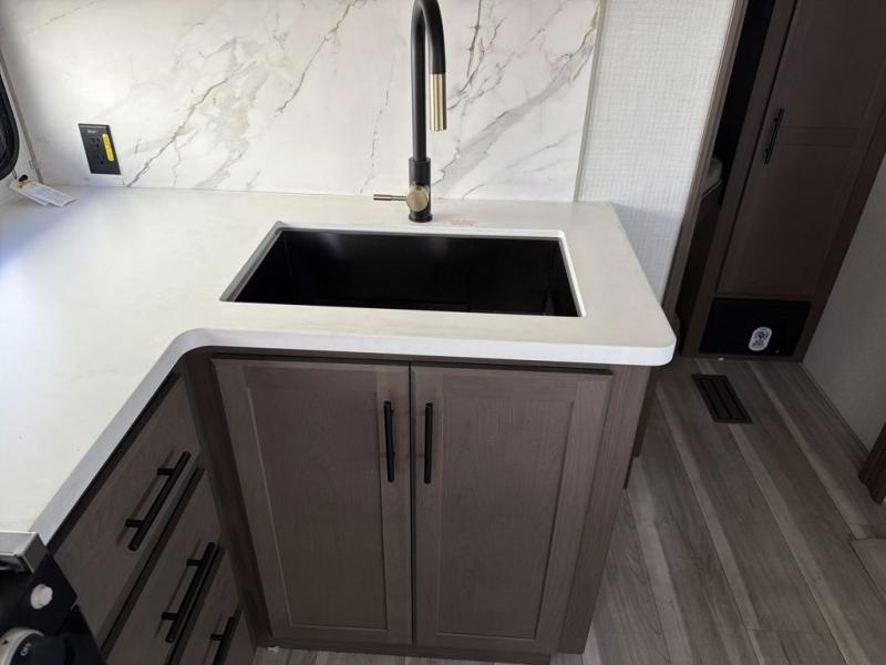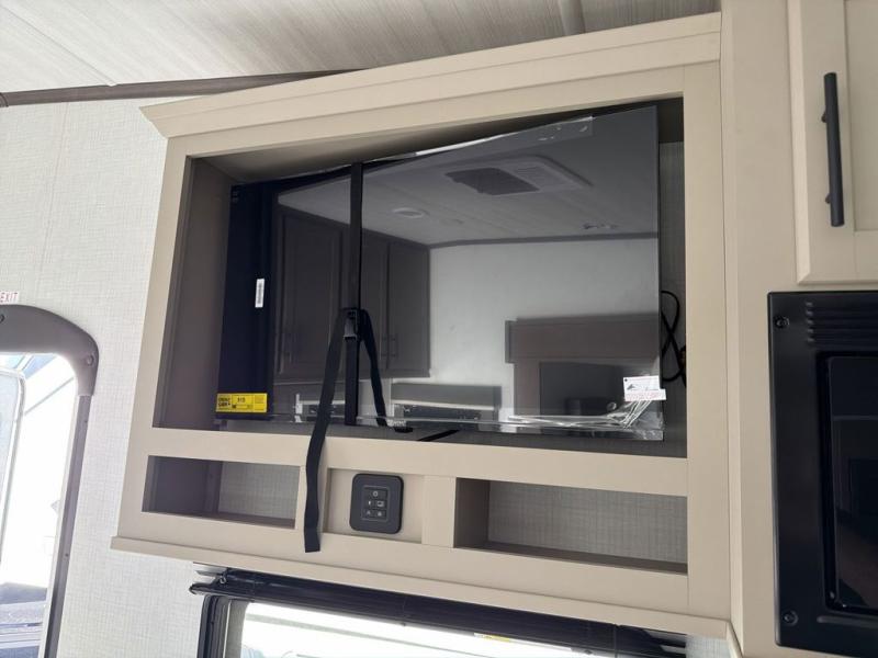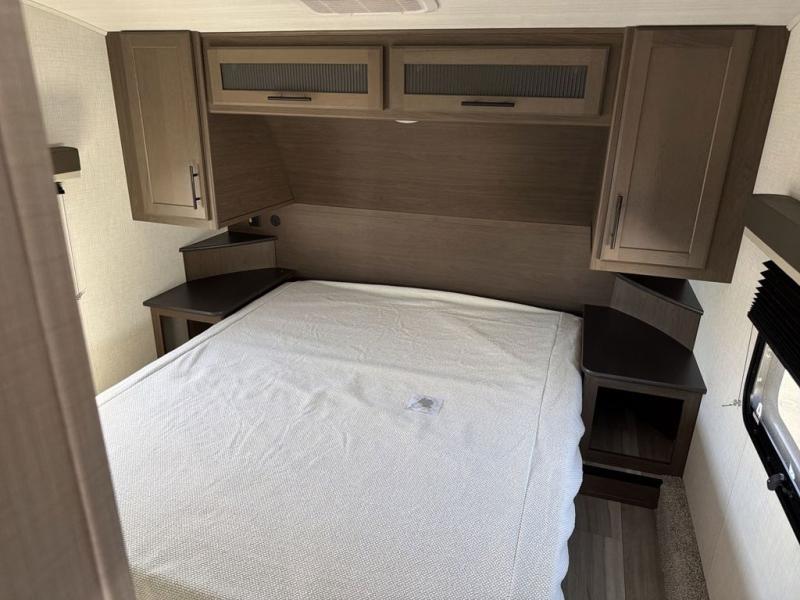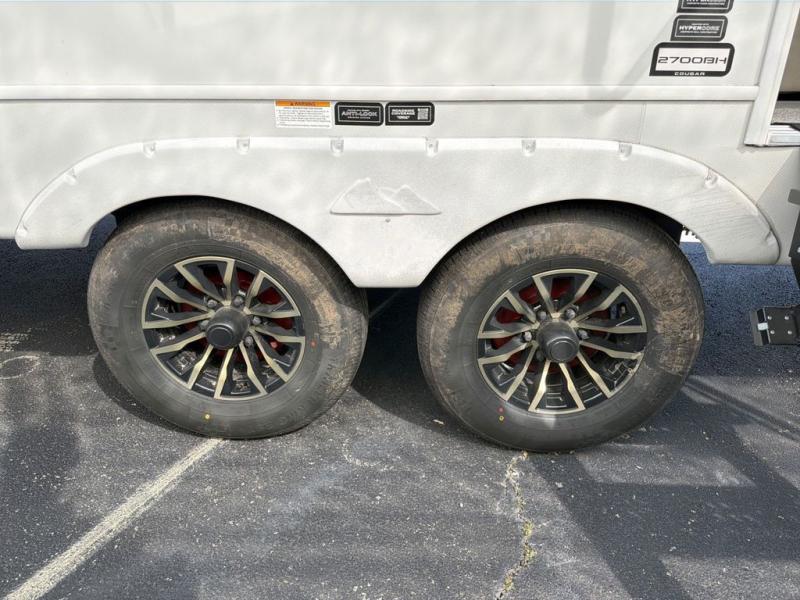 The Cougar Sport structural I-beam frame with stamped steel cross-members and outriggers, plus its AlphaPly roof membrane are what active RVers love about the construction of the Cougar line. The Cougar Sport models are no exception when it comes to a great package, as well as being smaller and lighter weight than their big brother Cougar models. A one-piece, heated and enclosed polypropylene underbelly will add protection against the elements, and the electric stabilizer jacks will provide more stability. On the inside, residential shaker style hardwood cabinet doors and decorative crown molding, plus seamless pressed countertops and an on-demand water heater will make your unit feel even more like home. You are also sure to appreciate the shiplap style decorative accent wall behind the bed, a porcelain foot flush toilet in the bathroom, plus residential kitchen hardware, and so much more.