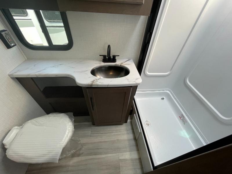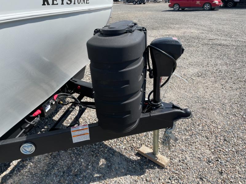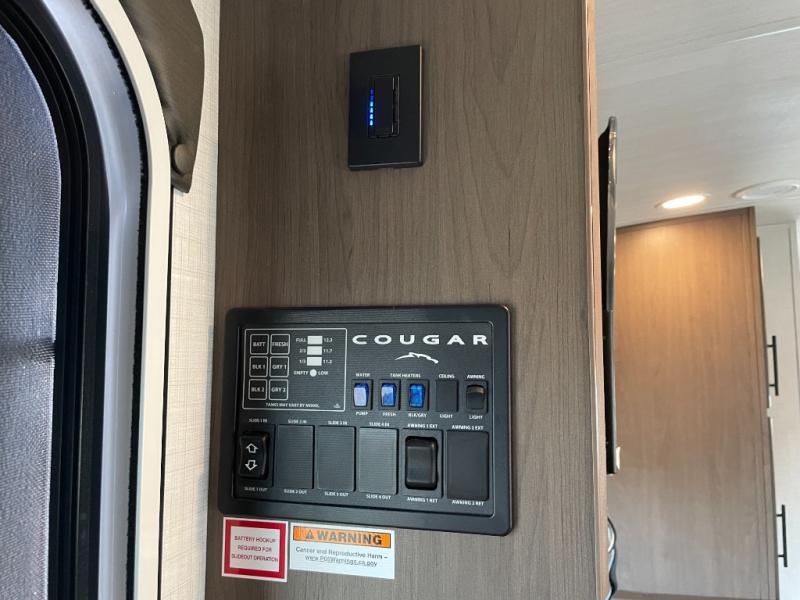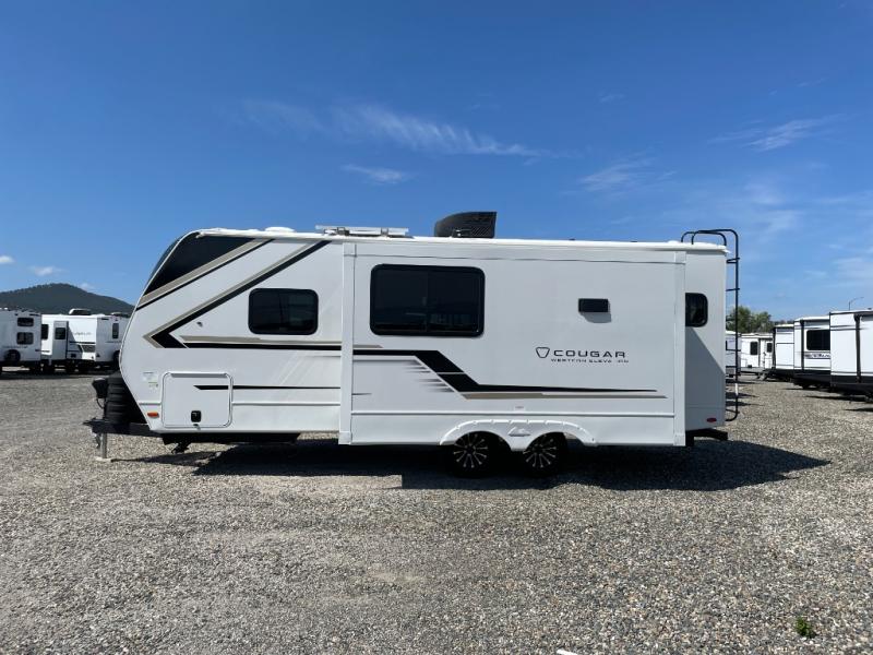 With any Cougar Western Elevation travel trailer by Keystone, you will find off-grid ready features and interior comforts to make each adventure count! Each unit is built with an automotive grade painted high-impact front cap with KeyShield protection, an AlphaPly roof membrane, and a one-piece polypropylene underbelly for added durability. There is also a high-performance Road Armor shock absorbing equalizer and Lippert axles for smoother towing. You will also appreciate the slam-latch baggage doors outside, along with a Key-Alike lock system, dual 30 lb. LP tanks and the industry's best 80-gallon fresh water capacity. The hardwood cabinet doors, seamless pressed countertops, and Oxygenics shower head will add to your comfort, and you'll find plenty of storage both inside and out for all your personal belongings, camp gear and more!