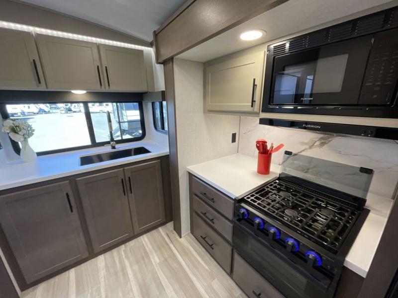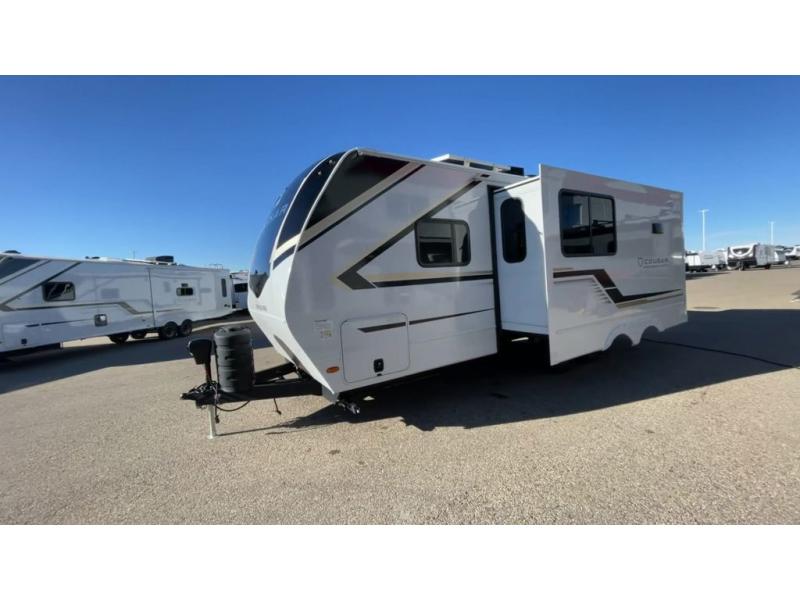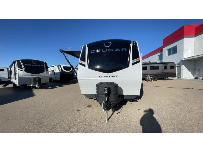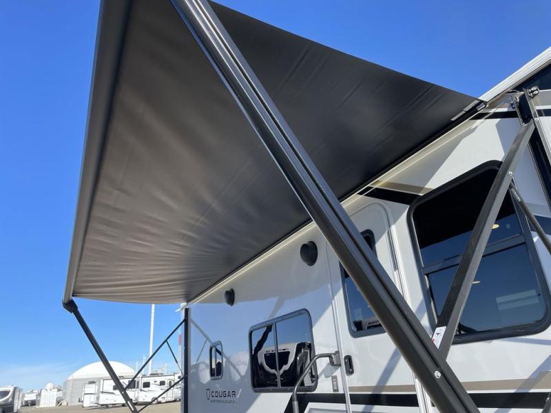 The Keystone Cougar Half-Ton fifth wheel and travel trailers are known as one of America's favorites for a reason! Some of those reasons are the exclusive features that come from Keystone, like the Winegard Air 360+ omni-directional rooftop antenna, the in-floor heating ducts, and the HyperCore composite wall construction with Vixen Fibrogloss high-gloss finish. The Cougar Half-Ton has a Climate Guard protection package with heat-deflecting white sidewalls, two roof attic vents, PEX plumbing and more to enjoy four season camping. Inside, you'll love the dimmable lighting, night roller shades throughout, shower skylight, and bedside USB outlets to keep your electronics charged.