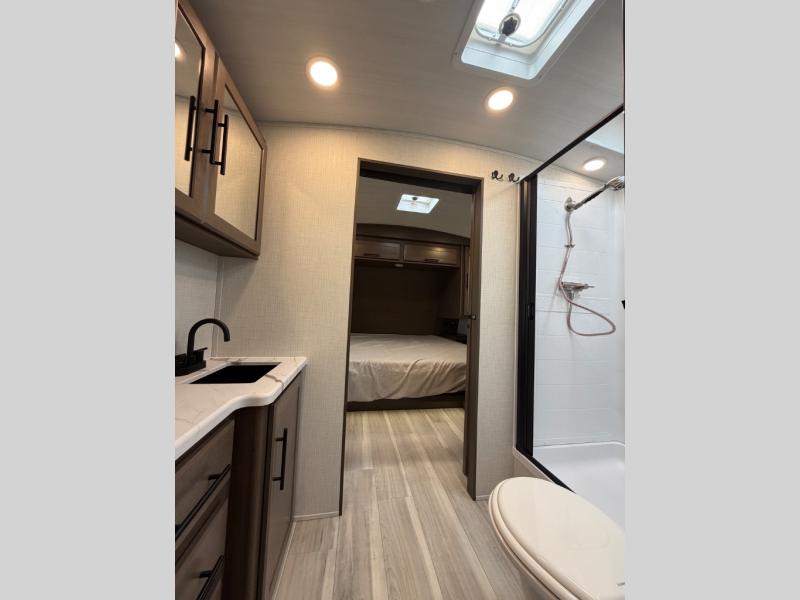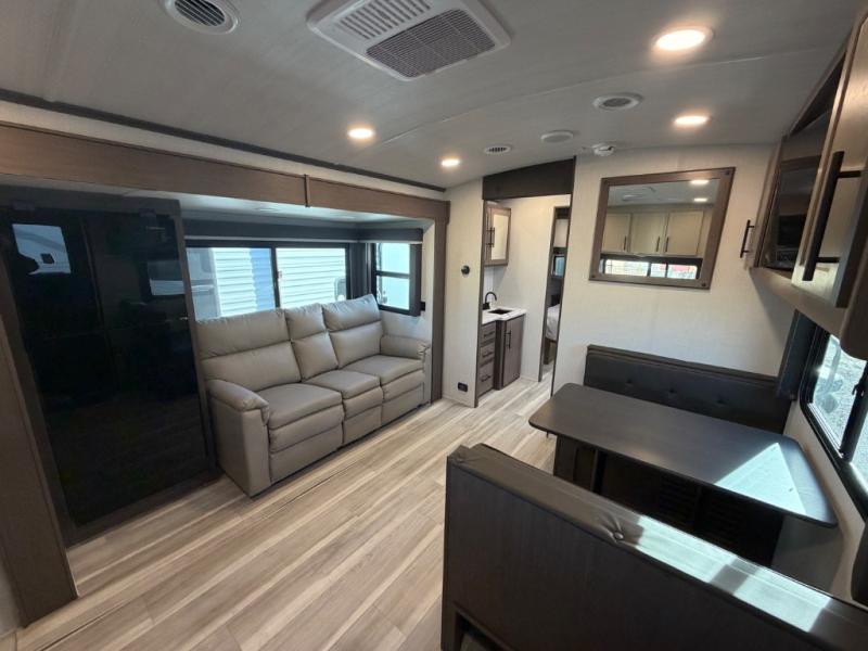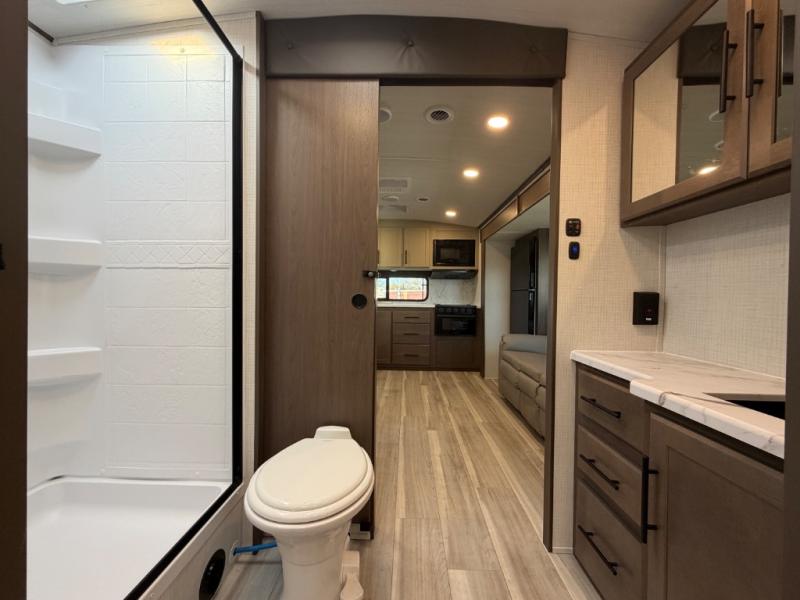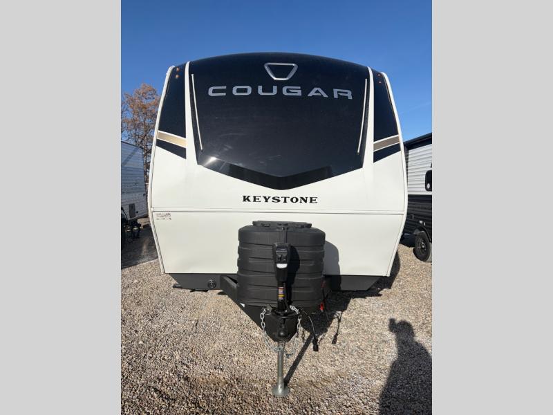 With any Cougar Western Elevation travel trailer by Keystone, you will find off-grid ready features and interior comforts to make each adventure count! Each unit is built with an automotive grade painted high-impact front cap with KeyShield protection, an AlphaPly roof membrane, and a one-piece polypropylene underbelly for added durability. There is also a high-performance Road Armor shock absorbing equalizer and Lippert axles for smoother towing. You will also appreciate the slam-latch baggage doors outside, along with a Key-Alike lock system, dual 30 lb. LP tanks and the industry's best 80-gallon fresh water capacity. The hardwood cabinet doors, seamless pressed countertops, and Oxygenics shower head will add to your comfort, and you'll find plenty of storage both inside and out for all your personal belongings, camp gear and more!