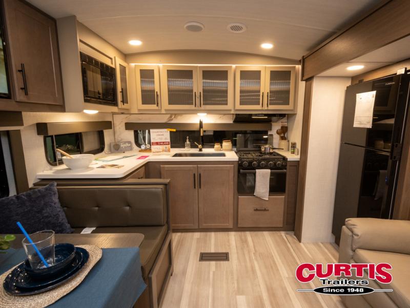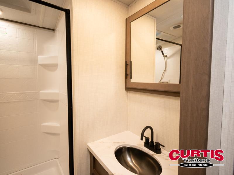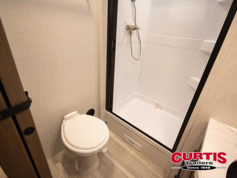 With any Cougar Western Elevation travel trailer by Keystone, you will find off-grid ready features and interior comforts to make each adventure count! Each unit is built with an automotive grade painted high-impact front cap with KeyShield protection, an AlphaPly roof membrane, and a one-piece polypropylene underbelly for added durability. There is also a high-performance Road Armor shock absorbing equalizer and Lippert axles for smoother towing. You will also appreciate the slam-latch baggage doors outside, along with a Key-Alike lock system, dual 30 lb. LP tanks and the industry's best 80-gallon fresh water capacity. The hardwood cabinet doors, seamless pressed countertops, and Oxygenics shower head will add to your comfort, and you'll find plenty of storage both inside and out for all your personal belongings, camp gear and more!