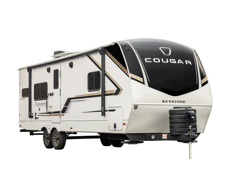 With any Cougar Western Elevation travel trailer by Keystone, you will find off-grid ready features and interior comforts to make each adventure count! Each unit is built with an automotive grade painted high-impact front cap with KeyShield protection, an AlphaPly roof membrane, and a one-piece polypropylene underbelly for added durability. There is also a high-performance Road Armor shock absorbing equalizer and Lippert axles for smoother towing. You will also appreciate the slam-latch baggage doors outside, along with a Key-Alike lock system, dual 30 lb. LP tanks and the industry's best 80-gallon fresh water capacity. The hardwood cabinet doors, seamless pressed countertops, and Oxygenics shower head will add to your comfort, and you'll find plenty of storage both inside and out for all your personal belongings, camp gear and more!