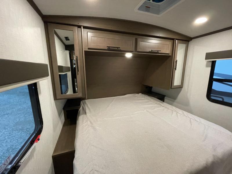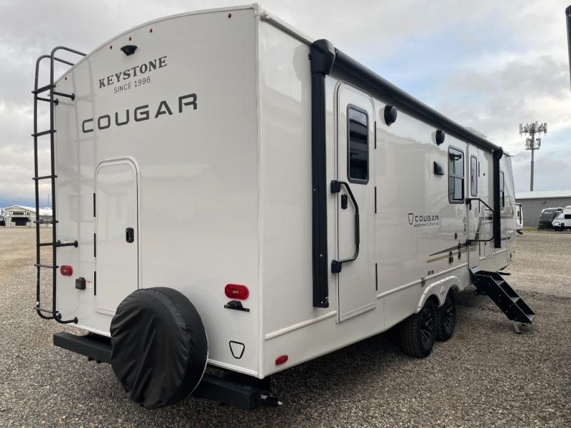 With any Cougar Western Elevation travel trailer by Keystone, you will find off-grid ready features and interior comforts to make each adventure count! Each unit is built with an automotive grade painted high-impact front cap with KeyShield protection, an AlphaPly roof membrane, and a one-piece polypropylene underbelly for added durability. There is also a high-performance Road Armor shock absorbing equalizer and Lippert axles for smoother towing. You will also appreciate the slam-latch baggage doors outside, along with a Key-Alike lock system, dual 30 lb. LP tanks and the industry's best 80-gallon fresh water capacity. The hardwood cabinet doors, seamless pressed countertops, and Oxygenics shower head will add to your comfort, and you'll find plenty of storage both inside and out for all your personal belongings, camp gear and more!