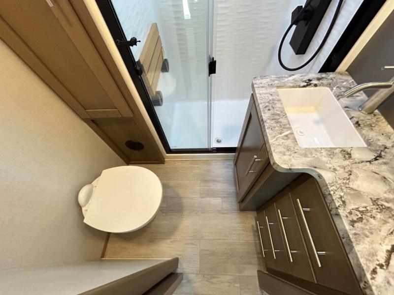 Get your adrenaline pumping with any one of these Keystone RV Fuzion fifth wheel toy haulers! The frame welded, Adjust-A-Trac tie-downs have 38 points to fully secure your toys as you travel, and the extended garage lengths have outside storage so you can haul bigger toys. A fuel pump station will let you easily fill up before heading out, and the exclusive Omni-Chill technology offers high-efficiency air conditioning and maximum cooling. The interior provides fiberglass backed linoleum flooring, extra-tall slide height, solid wood cabinet and drawer frames, and extra tall ceilings with crown molding to mention a few luxuries. Outside, you'll find three Girard cassette awnings, 4k framed tinted safety glass windows, a Titan hydraulic leveling system, and many more conveniences!