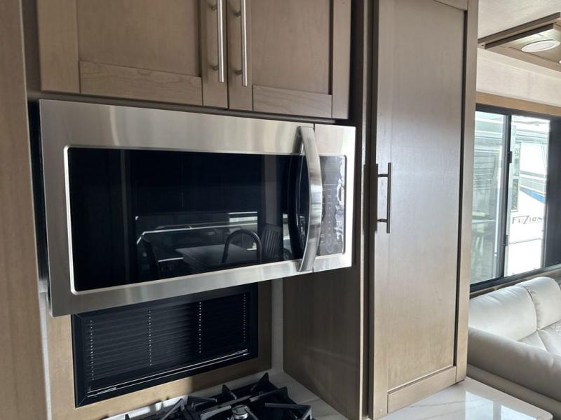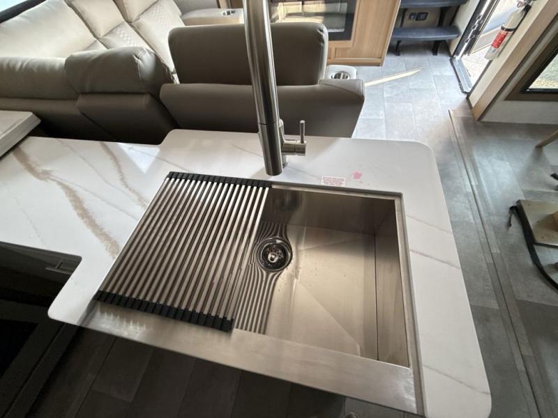 Get your adrenaline pumping with any one of these Keystone RV Fuzion fifth wheel toy haulers! The frame welded, Adjust-A-Trac tie-downs have 38 points to fully secure your toys as you travel, and the extended garage lengths have outside storage so you can haul bigger toys. A fuel pump station will let you easily fill up before heading out, and the exclusive Omni-Chill technology offers high-efficiency air conditioning and maximum cooling. The interior provides fiberglass backed linoleum flooring, extra-tall slide height, solid wood cabinet and drawer frames, and extra tall ceilings with crown molding to mention a few luxuries. Outside, you'll find three Girard cassette awnings, 4k framed tinted safety glass windows, a Titan hydraulic leveling system, and many more conveniences!