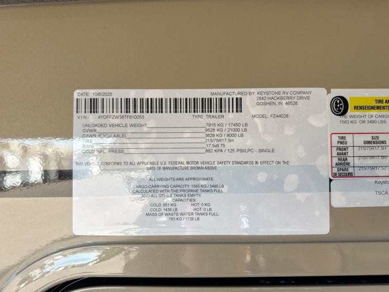 New 2026 Keystone RV Fuzion 440 Toy Hauler Fifth Wheel