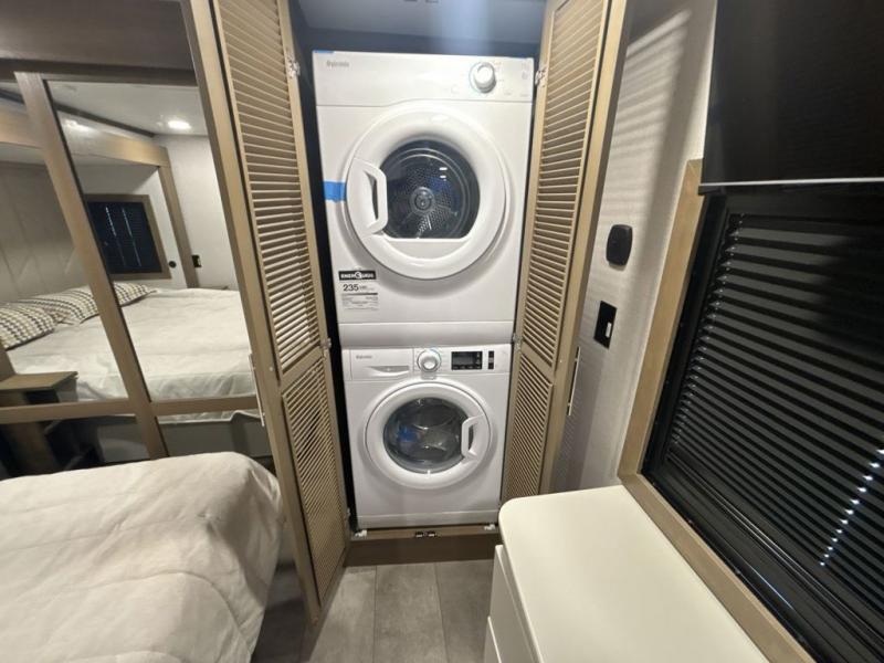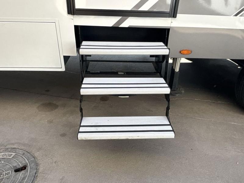 Get your adrenaline pumping with any one of these Keystone RV Fuzion fifth wheel toy haulers! The frame welded, Adjust-A-Trac tie-downs have 38 points to fully secure your toys as you travel, and the extended garage lengths have outside storage so you can haul bigger toys. A fuel pump station will let you easily fill up before heading out, and the exclusive Omni-Chill technology offers high-efficiency air conditioning and maximum cooling. The interior provides fiberglass backed linoleum flooring, extra-tall slide height, solid wood cabinet and drawer frames, and extra tall ceilings with crown molding to mention a few luxuries. Outside, you'll find three Girard cassette awnings, 4k framed tinted safety glass windows, a Titan hydraulic leveling system, and many more conveniences!