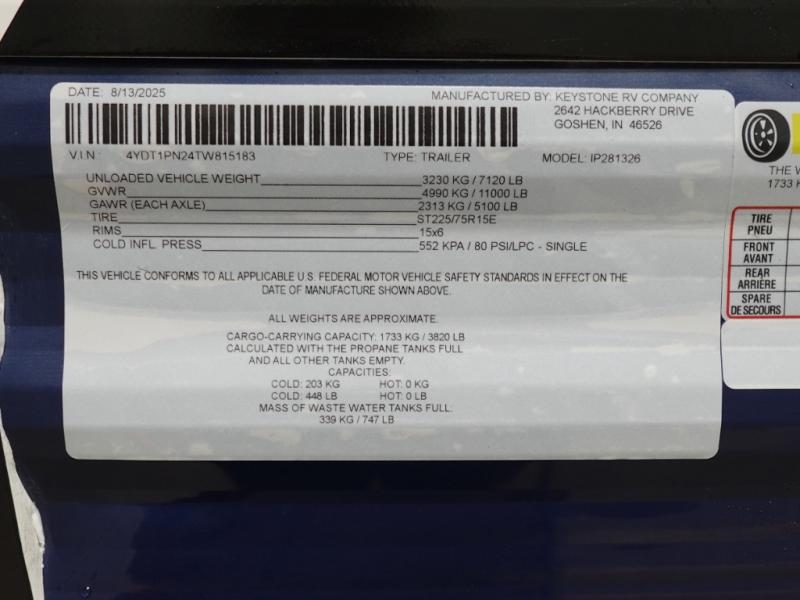 | Awning Info | 18' Electric with Adjustable Arms, Auto Dump, LED Lights |