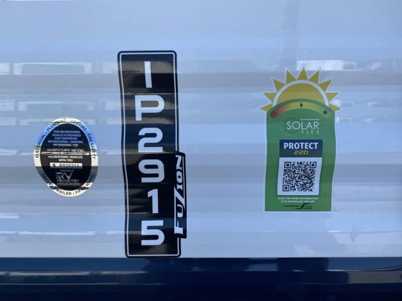 Embrace the great outdoors with a Fuzion Impact Edition toy hauler by Keystone! There is an aluminum exterior and a 8' 4" wide-body construction for your toys and gear! The one-piece polypropylene heated underbelly includes enclosed tanks and valves which will help extend your camping season, and the leaf spring suspension system will provide smooth towing. Head inside to enjoy night shades, hardwood cabinetry, and fiberglass backed linoleum floor with no carpet-free for easy cleaning. Each model also includes a Girard on-demand water heater, two 30 lb. LP tanks, recessed LED puck lighting throughout, and the list of comforts goes on!