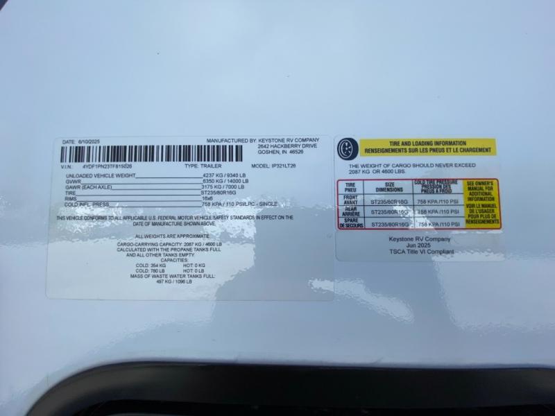 | Awning Info | 20' Electric with Adjustable Arms, Auto Dump, LED Light Strip |